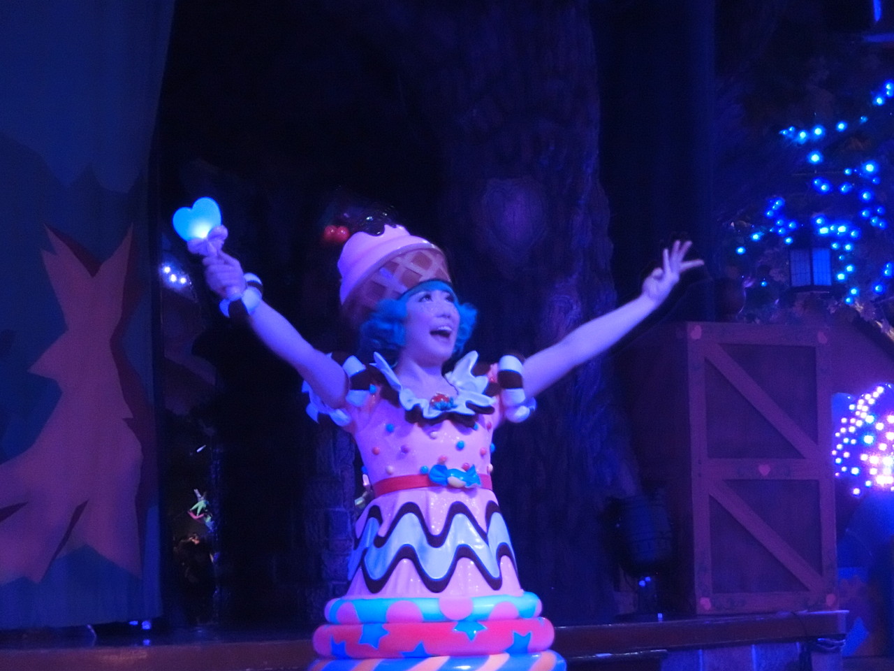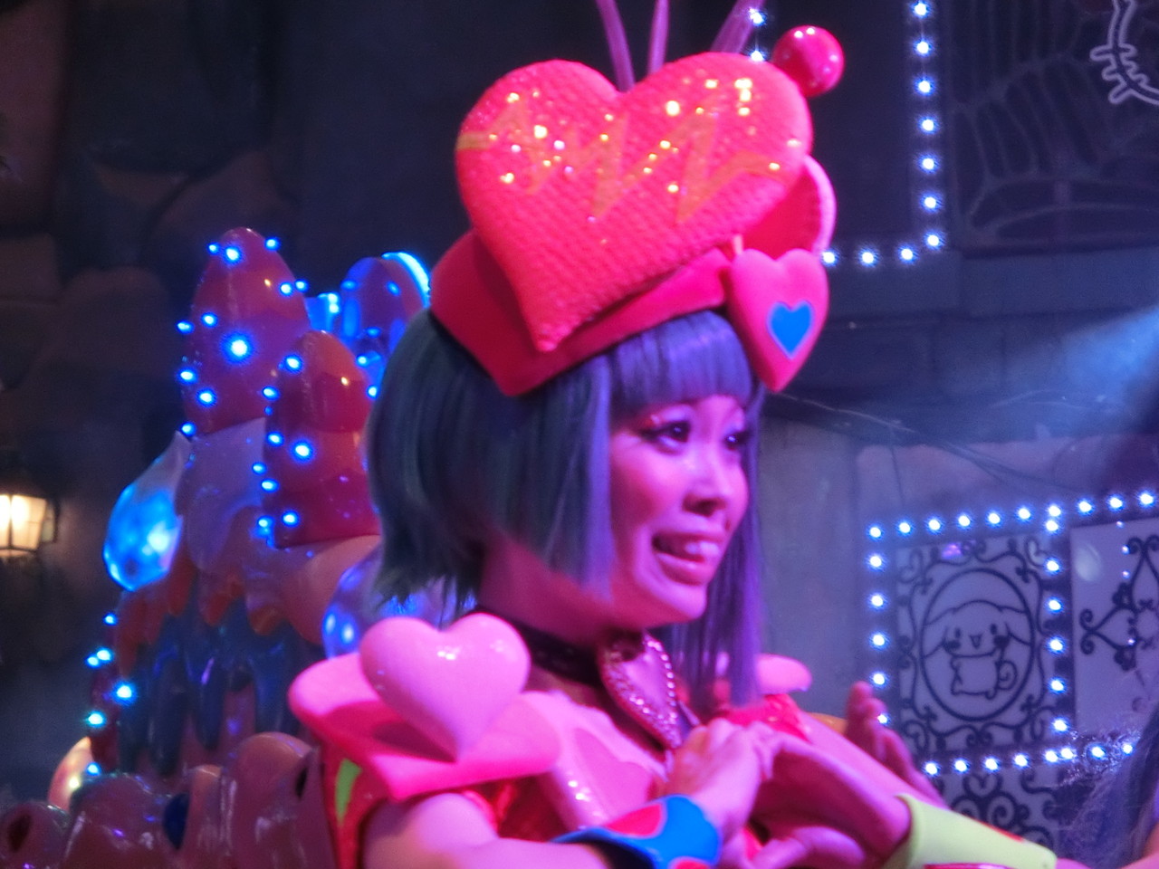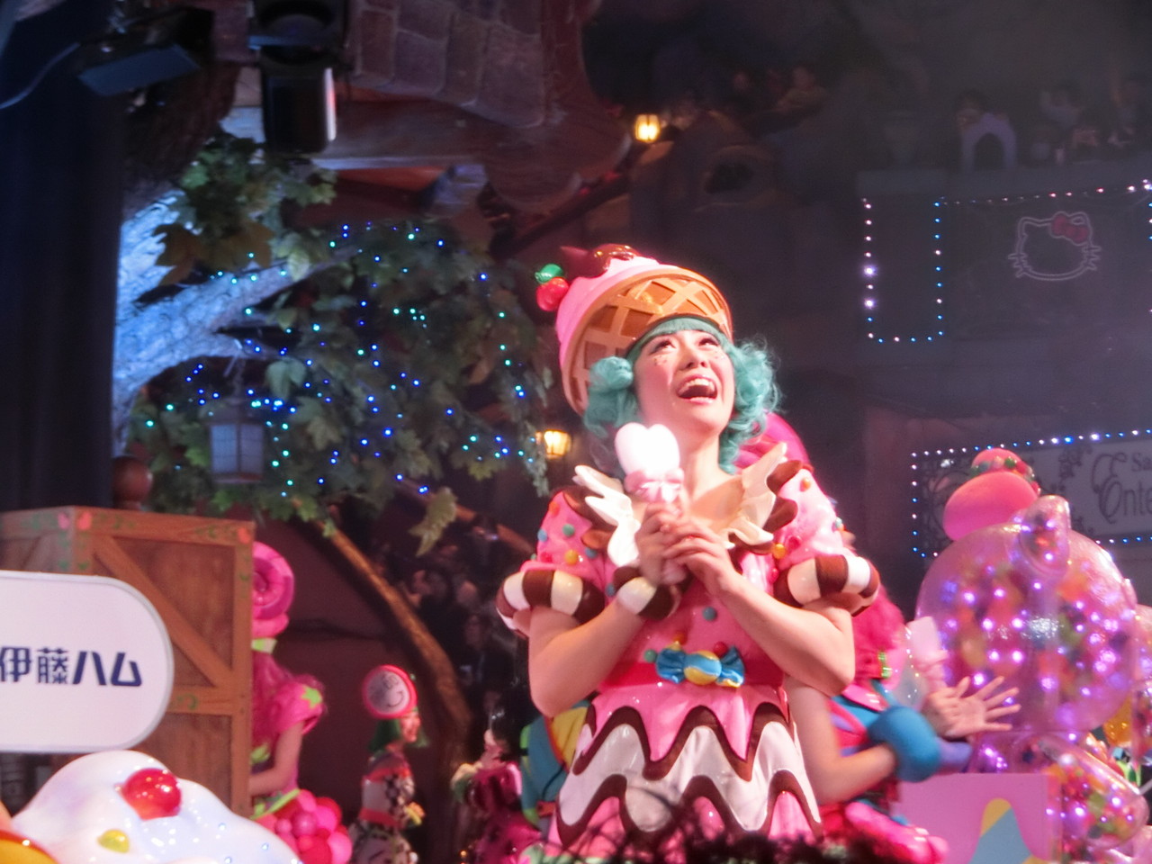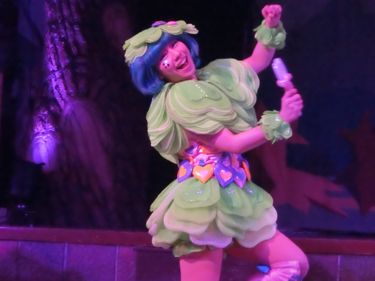 そして、ステ前最大のシャッターチャンスはパレ終了直前!!!各ダンサーさんのポーズタイムが「2秒だけ」あるんです。キャベツキャラのこれ、萌えるんだよねぇ。。。今日のゆいやんも可愛いけど、ぜひ来年、みみたんで撮りたいな!!