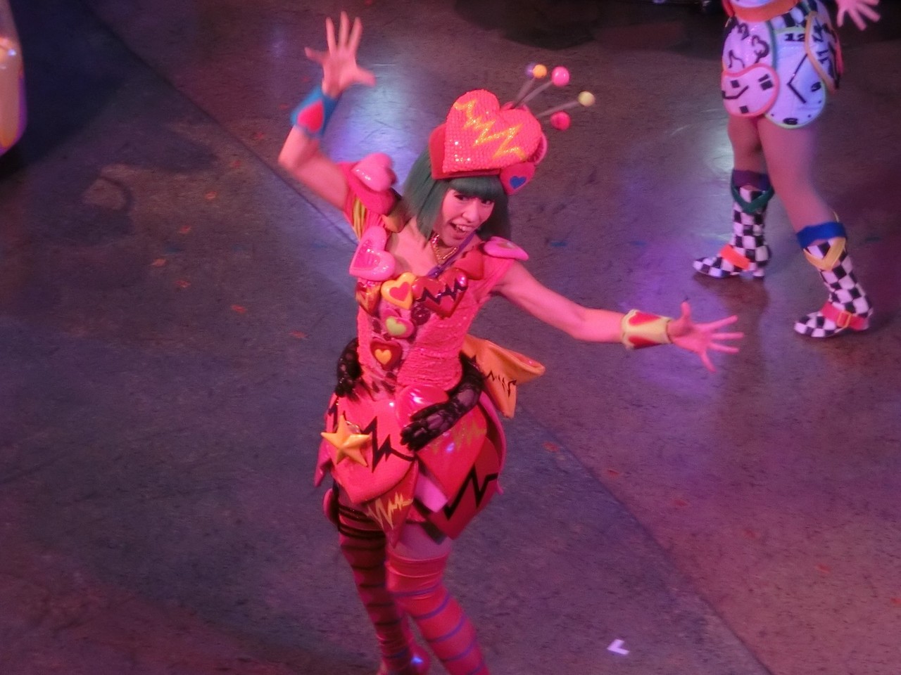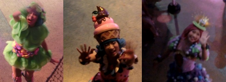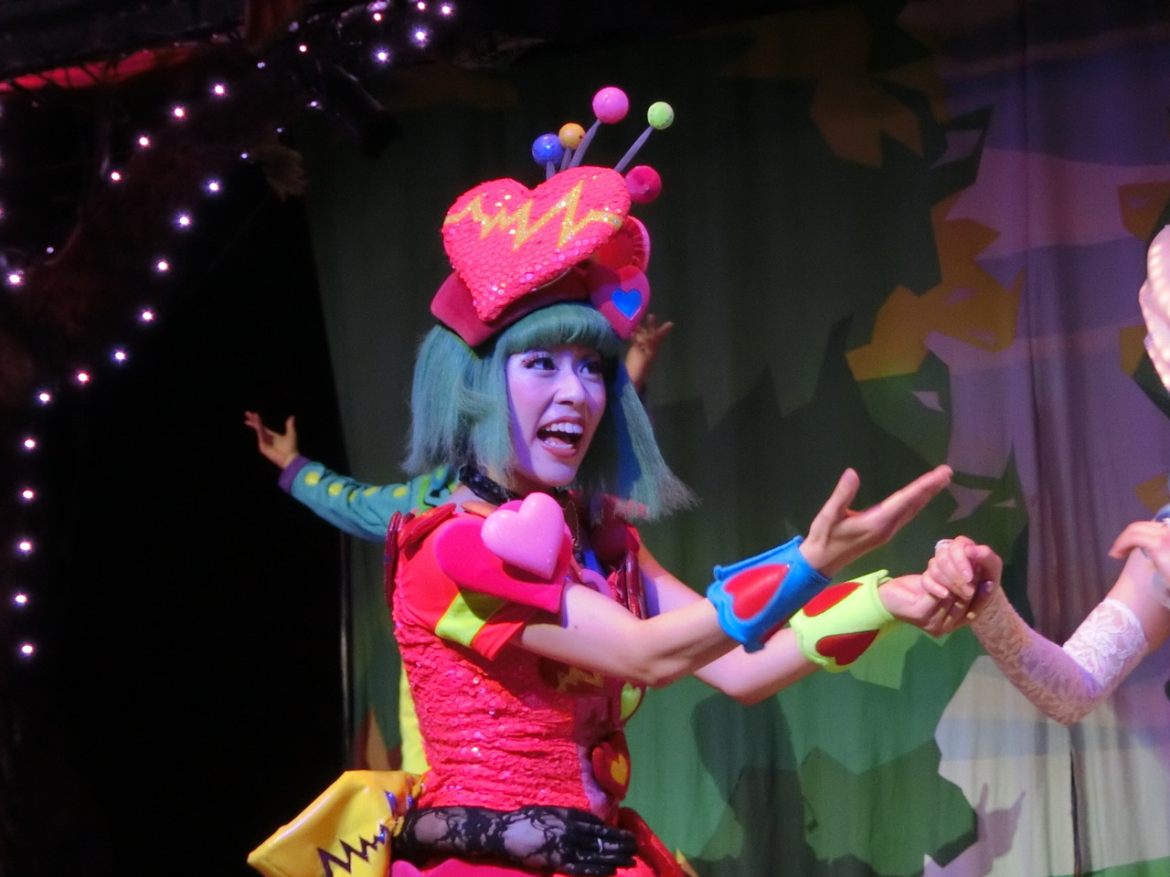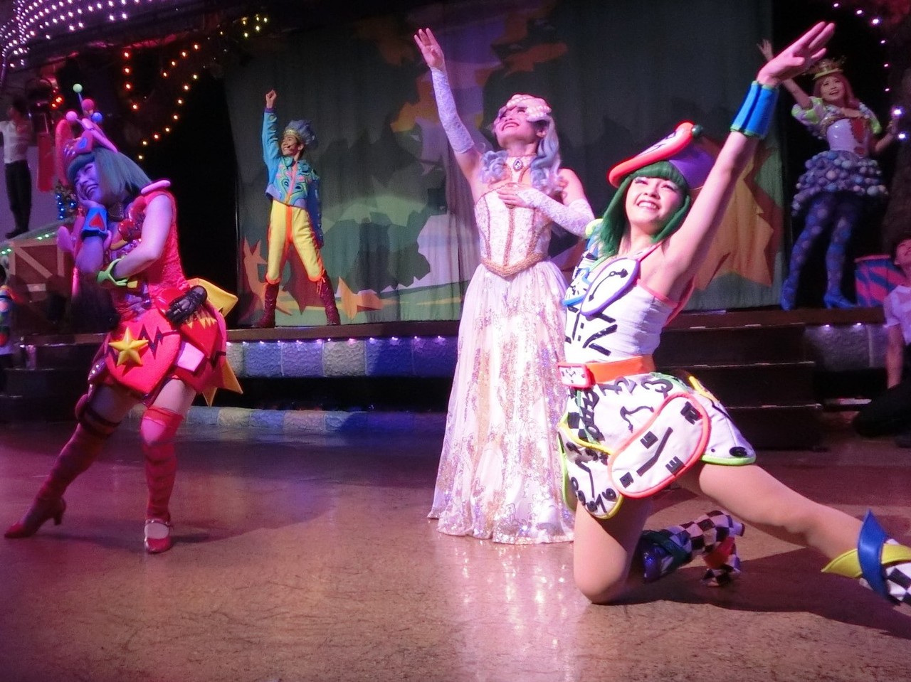 目の前の闇三女軍団はこの方たち。女王はゆいやん(櫻井結衣ちゃん)、コウモリさんはゆいかちゃん(中江結依華ちゃん)とライティ君(馬場礼可さん)。いいねぇ、いいねぇ。ゆいかちゃんもライティ君も、悪そうだね~。