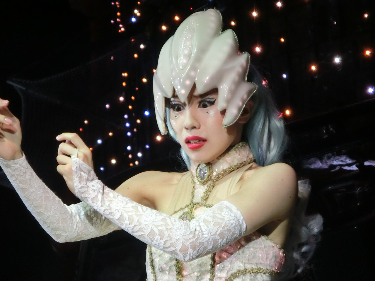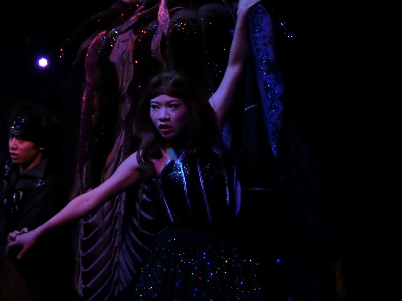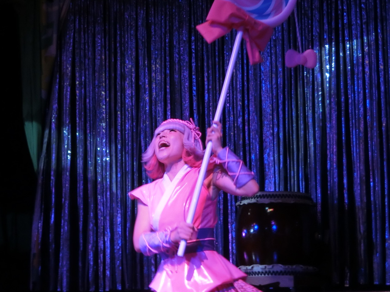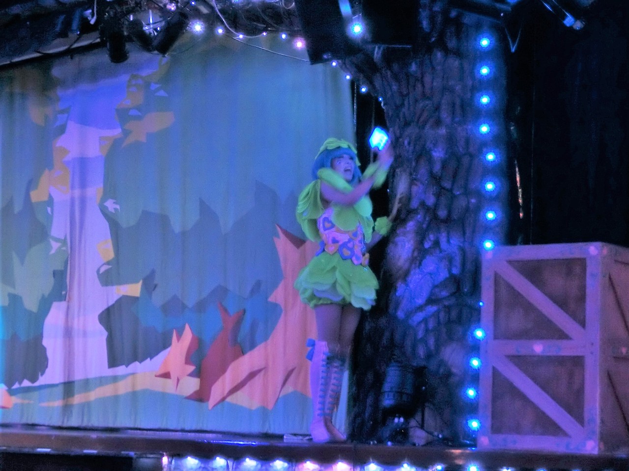 目の前の闇三女軍団はこの方たち。女王はゆいやん(櫻井結衣ちゃん)、コウモリさんはゆいかちゃん(中江結依華ちゃん)とライティ君(馬場礼可さん)。いいねぇ、いいねぇ。ゆいかちゃんもライティ君も、悪そうだね~。