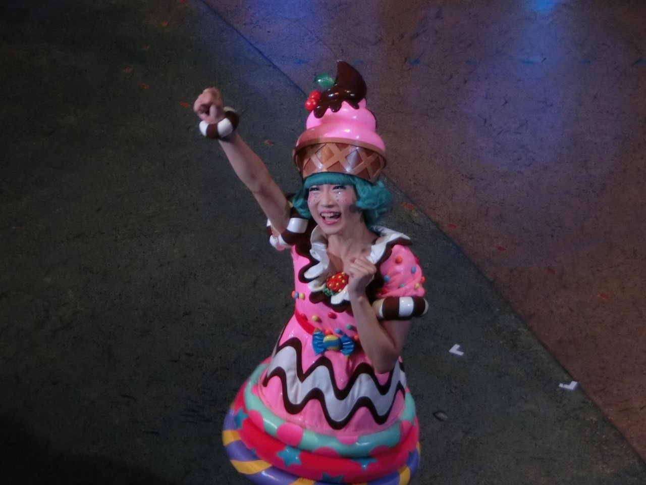11時。まずはぐでたまからスタート。今日のMCさんはなっちゃん(梶菜津希ちゃん)。なっちゃん、この衣装、すごく似合うんだよなぁ…。
