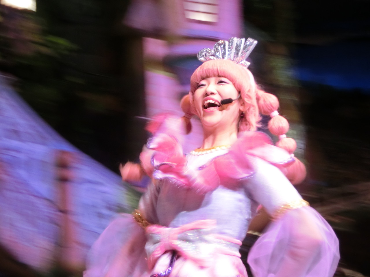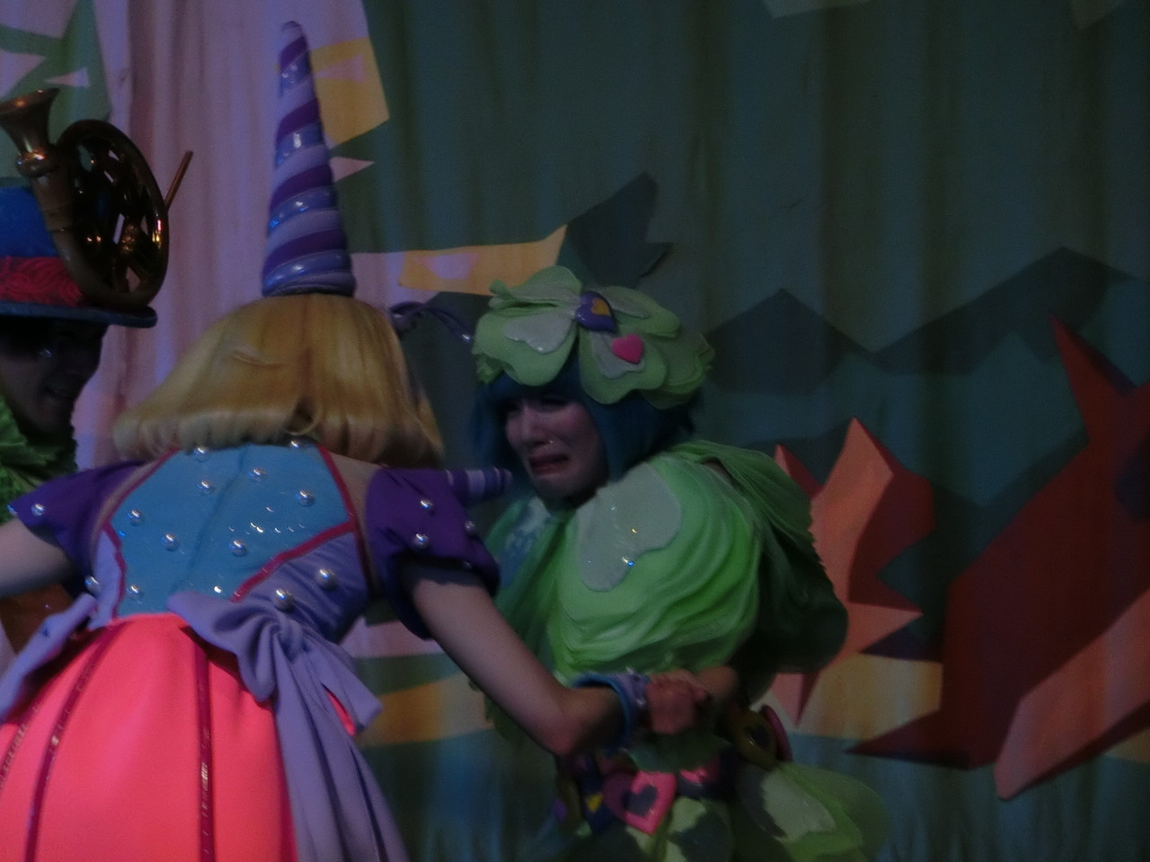 冒険の精(ピンク)のなっちゃん(梶菜津希ちゃん)。すごく不安そうな表情です。