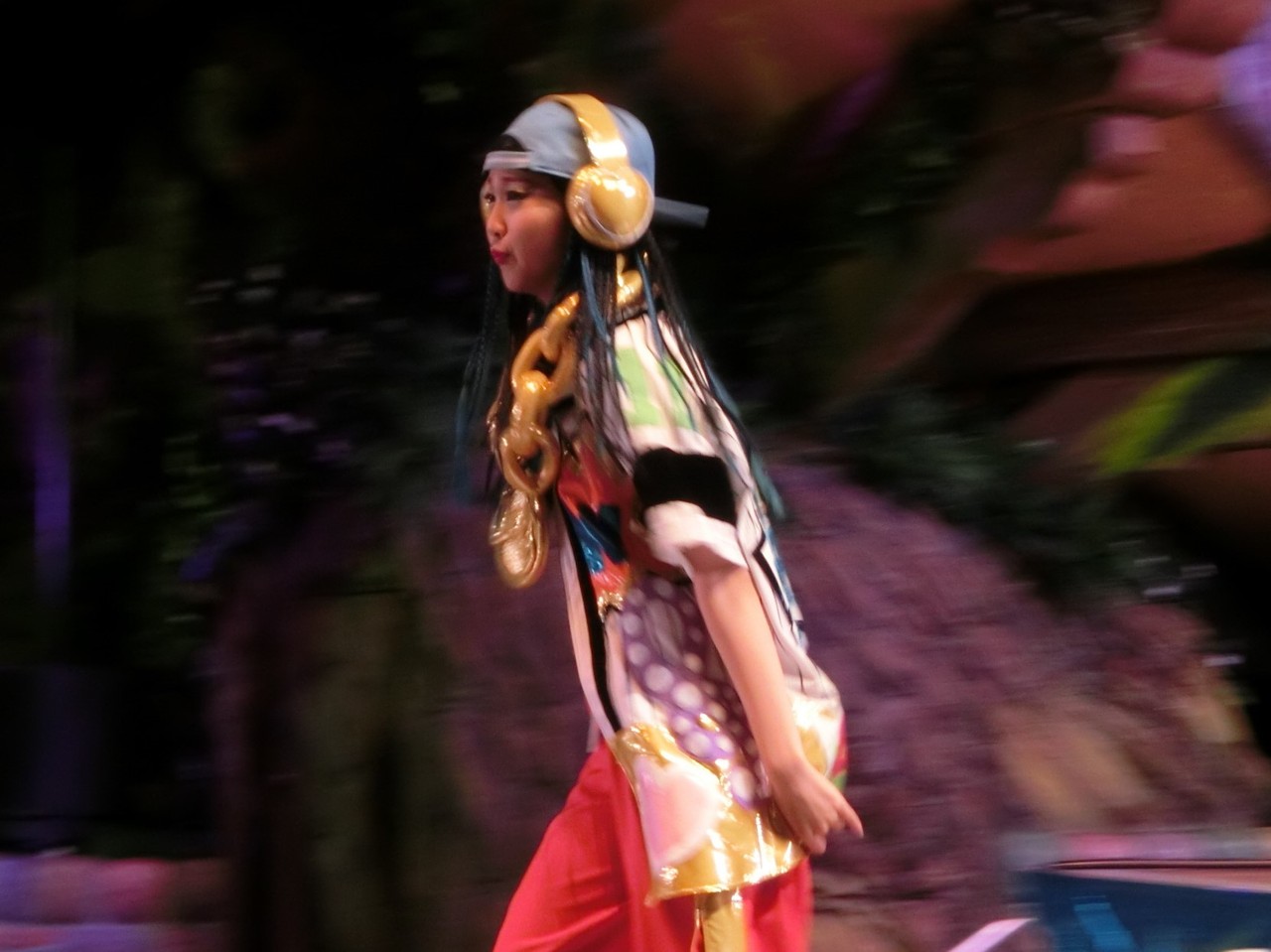 鬼が島の赤鬼さんで印象に残ったのは、今日もゆっきーなちゃん(細矢幸菜ちゃん)。キティがゴローさんを迎えに来るシーンで、ほかの赤鬼さんたちが怪訝な顔つきでにらみを利かせている中、「キティたちに興味津々」な、ちょっと笑顔をうかべた顔つきでキョロキョロしていたのが「すごい…!」と思っちゃいました。確かに、鬼にもいろいろな性格がいてもいいはずですよね。