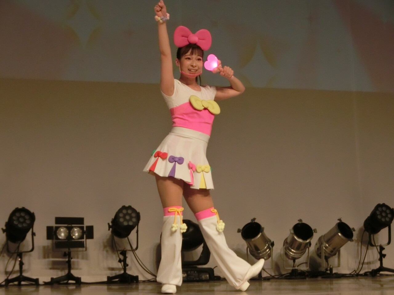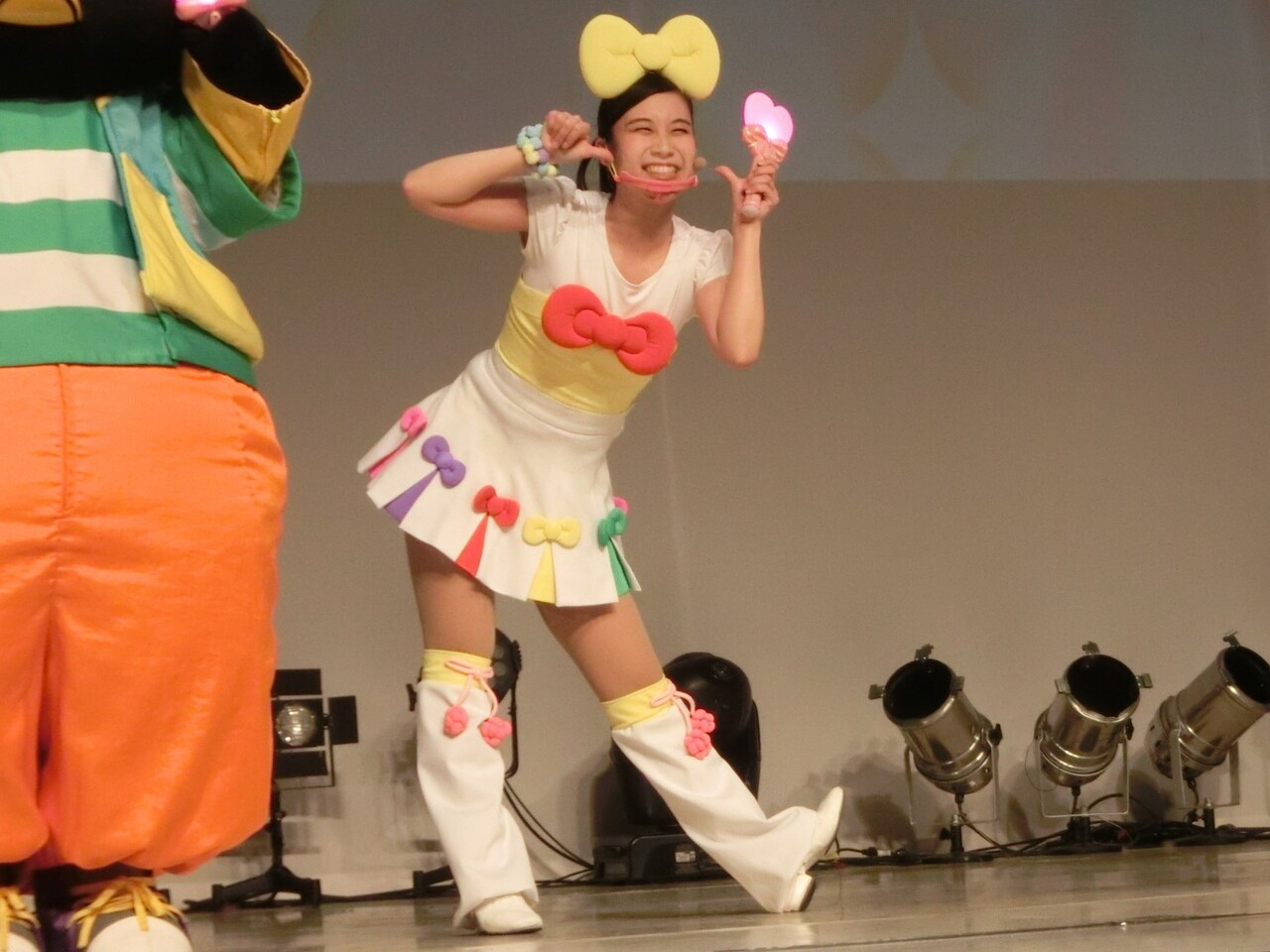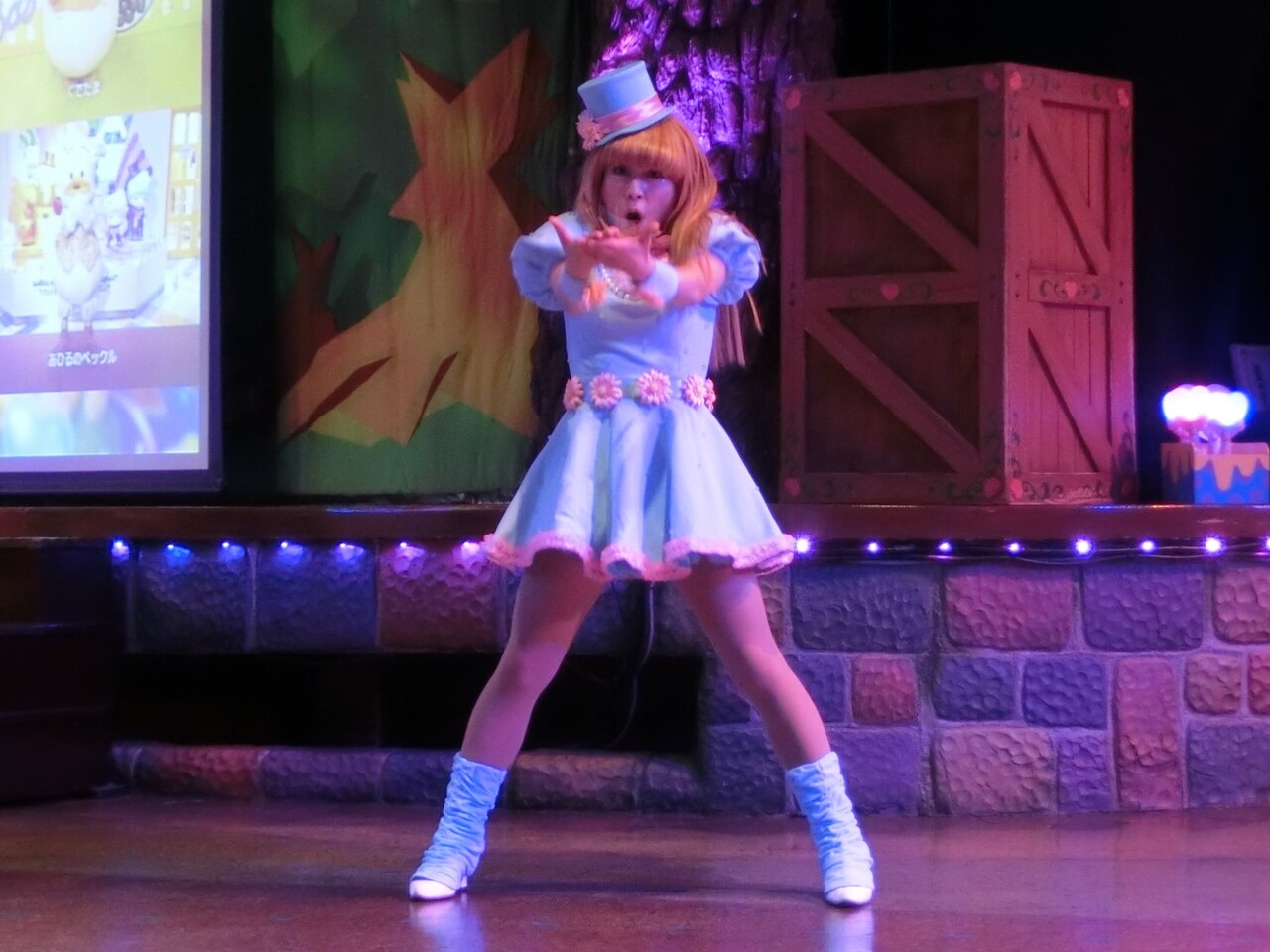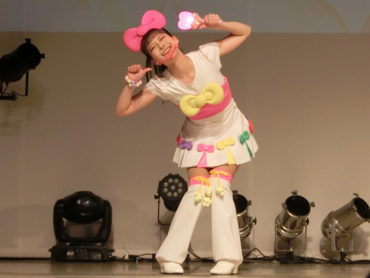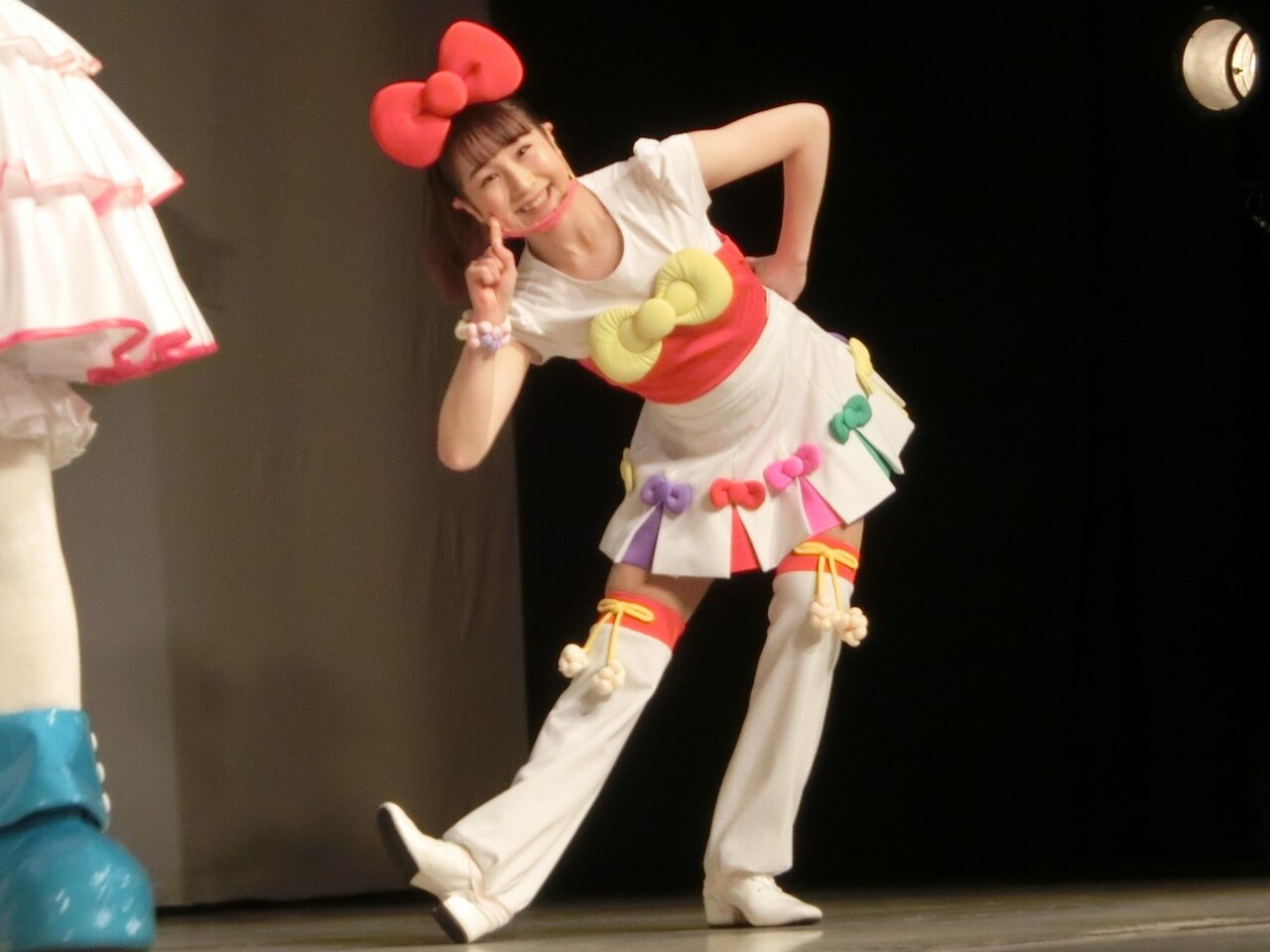 実は前からちょっと気づいていたんですが、この3人、片つま先をピッとあげてポーズを取ることが多いんですよね。特にまゆこちゃんは2曲目のキティの曲でも軽やかにつま先上げのダンスをするので、それが可愛くて毎回楽しみに観ちゃいます。