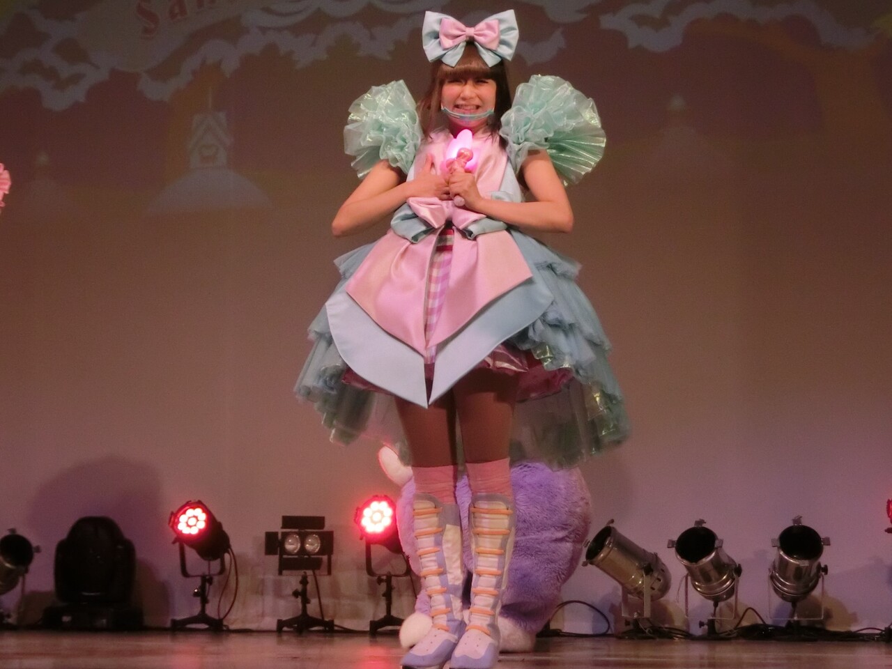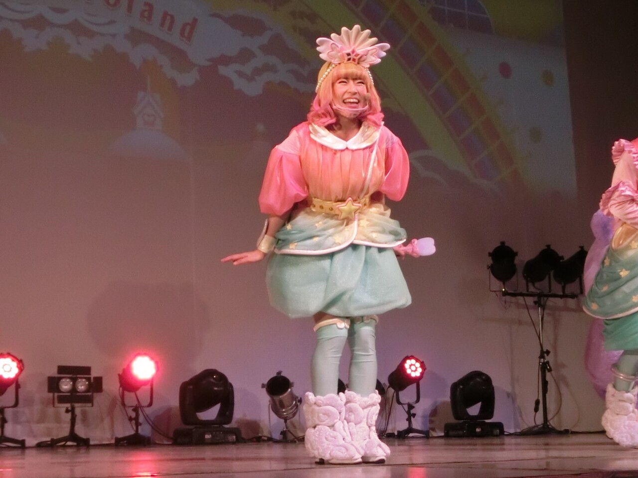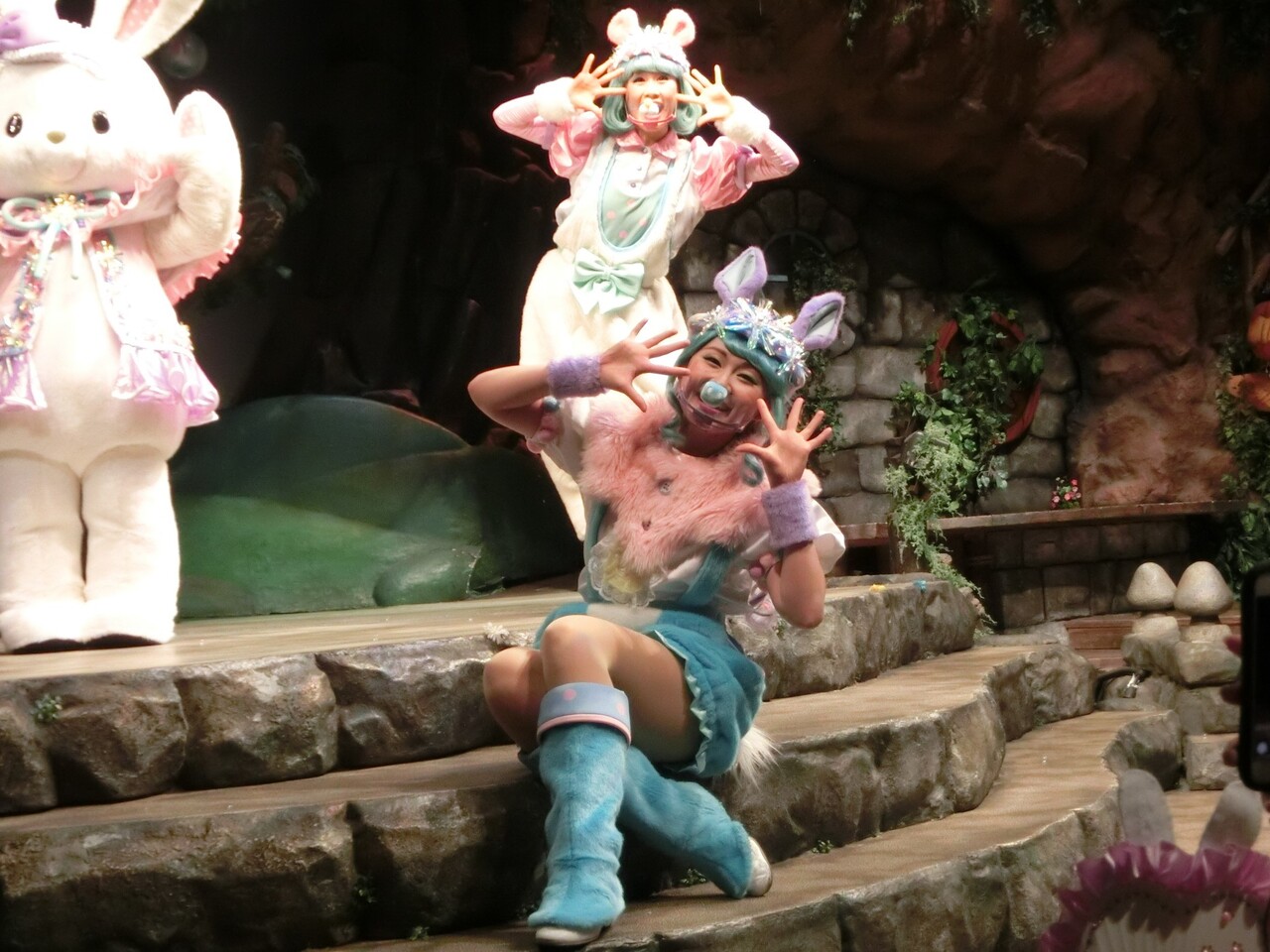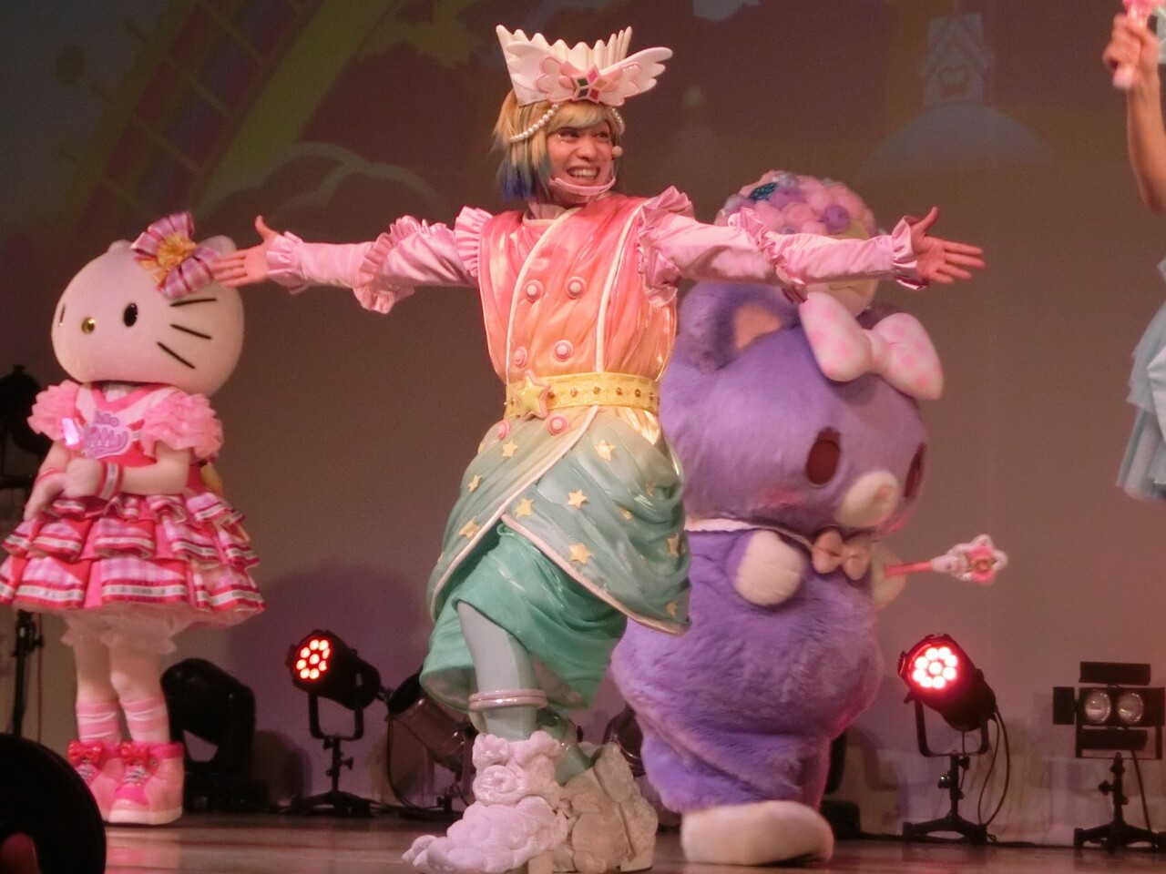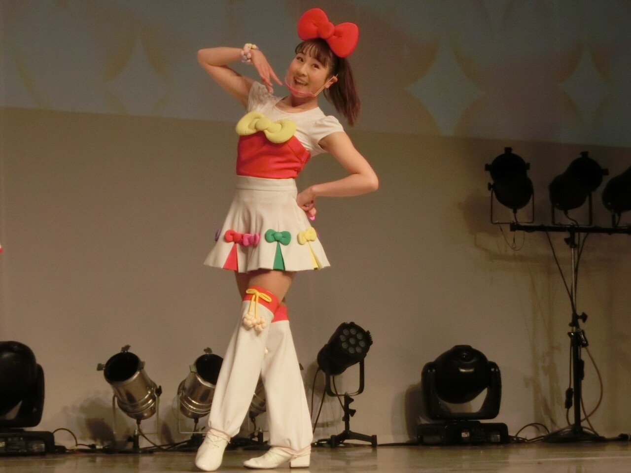 実は前からちょっと気づいていたんですが、この3人、片つま先をピッとあげてポーズを取ることが多いんですよね。特にまゆこちゃんは2曲目のキティの曲でも軽やかにつま先上げのダンスをするので、それが可愛くて毎回楽しみに観ちゃいます。