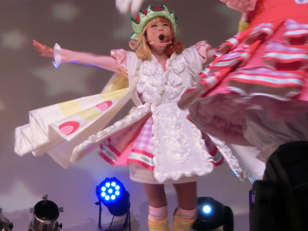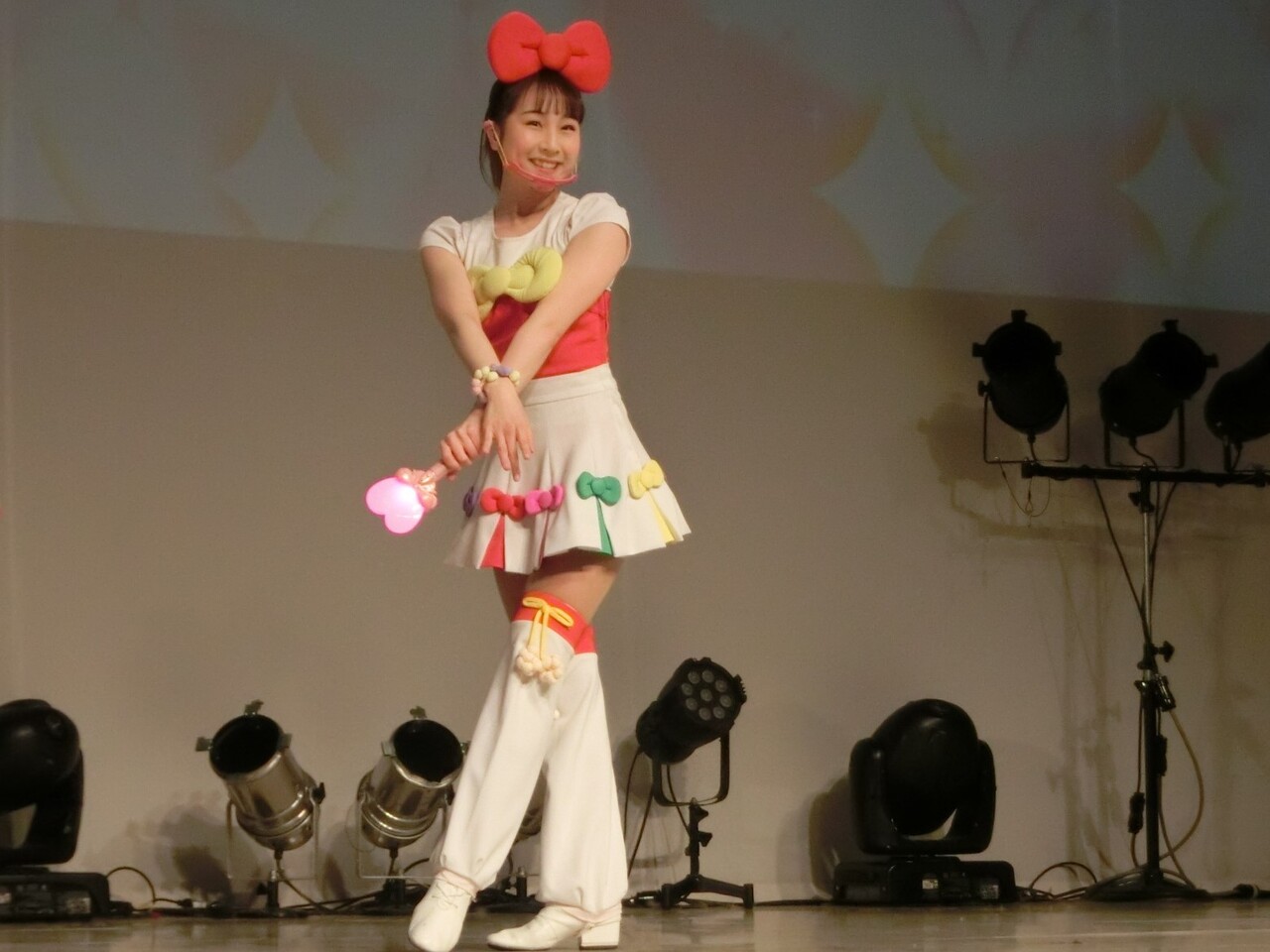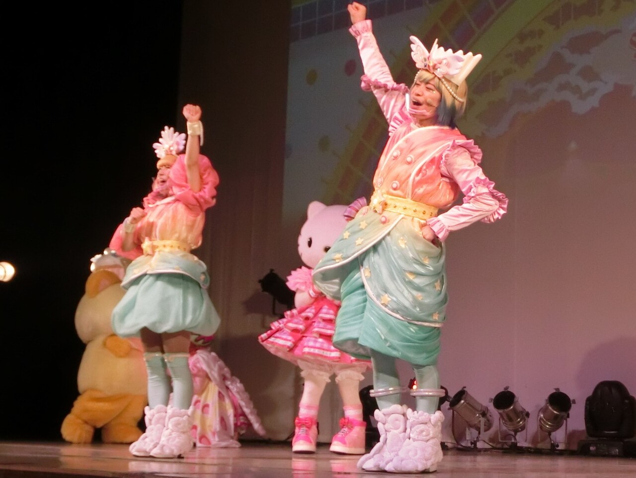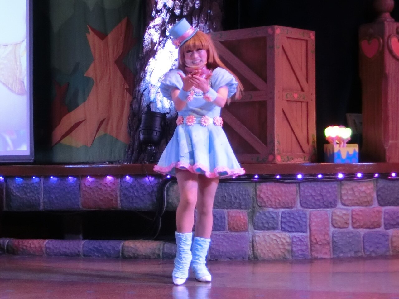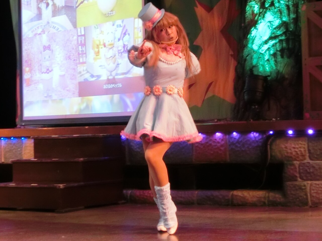 実は前からちょっと気づいていたんですが、この3人、片つま先をピッとあげてポーズを取ることが多いんですよね。特にまゆこちゃんは2曲目のキティの曲でも軽やかにつま先上げのダンスをするので、それが可愛くて毎回楽しみに観ちゃいます。