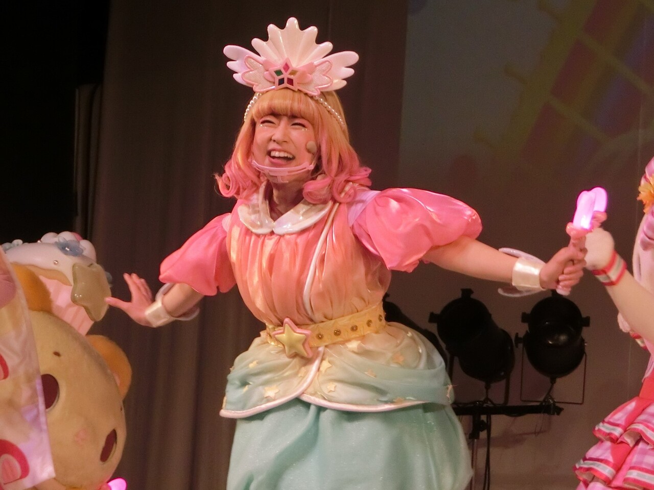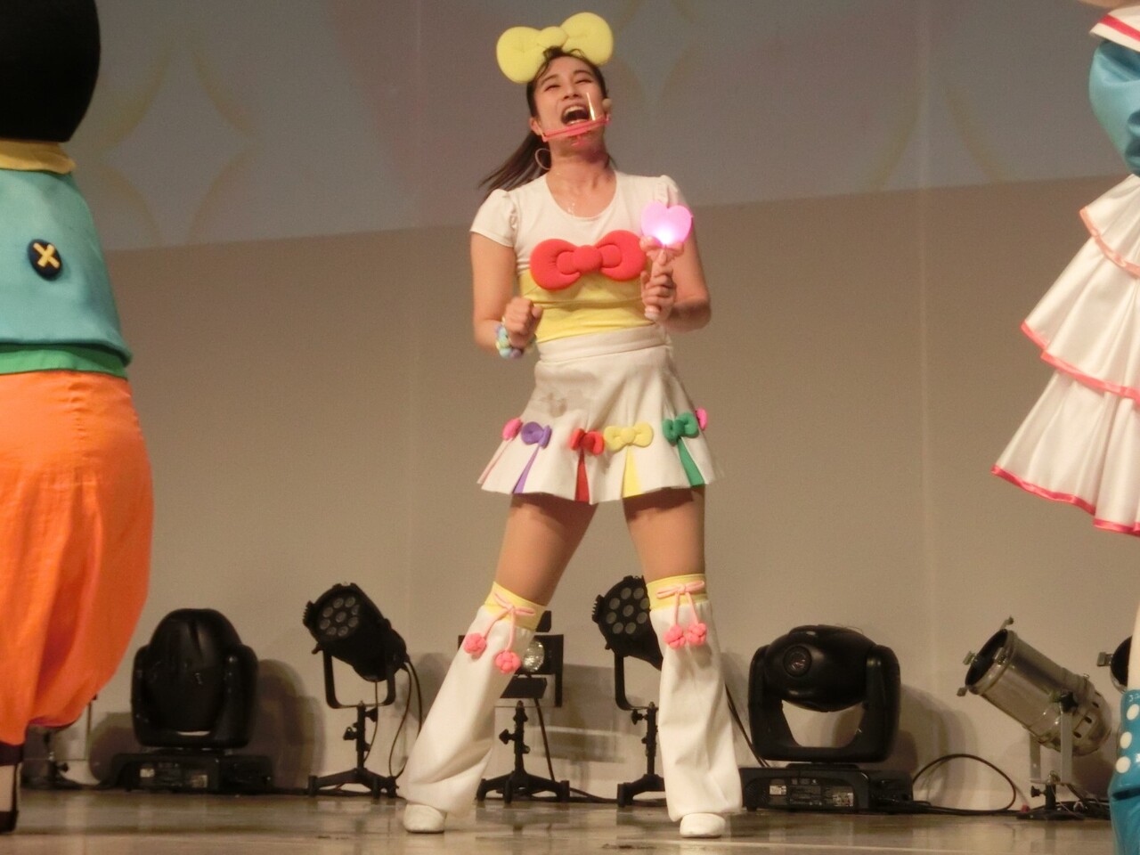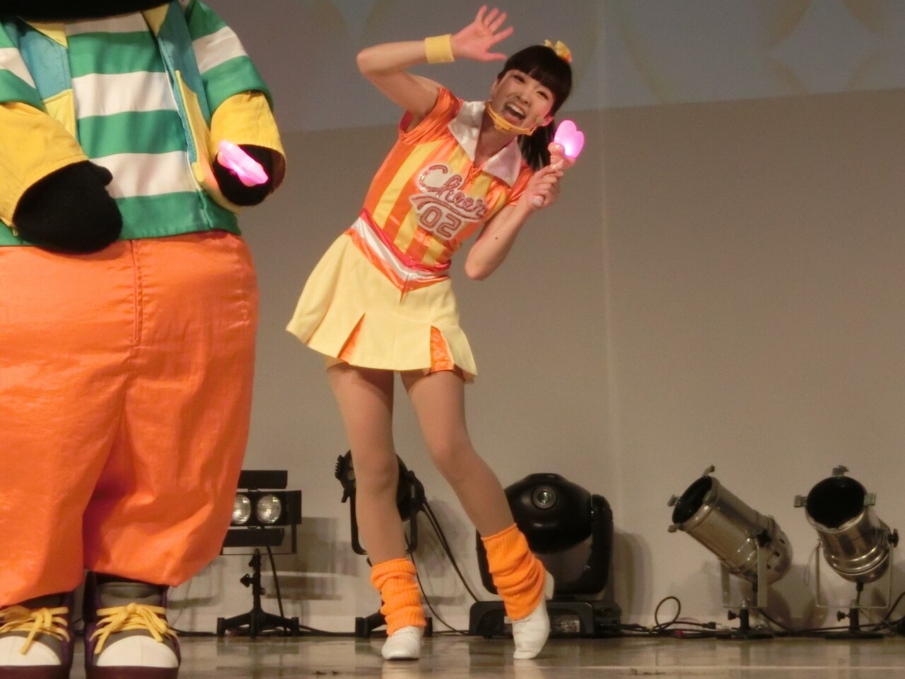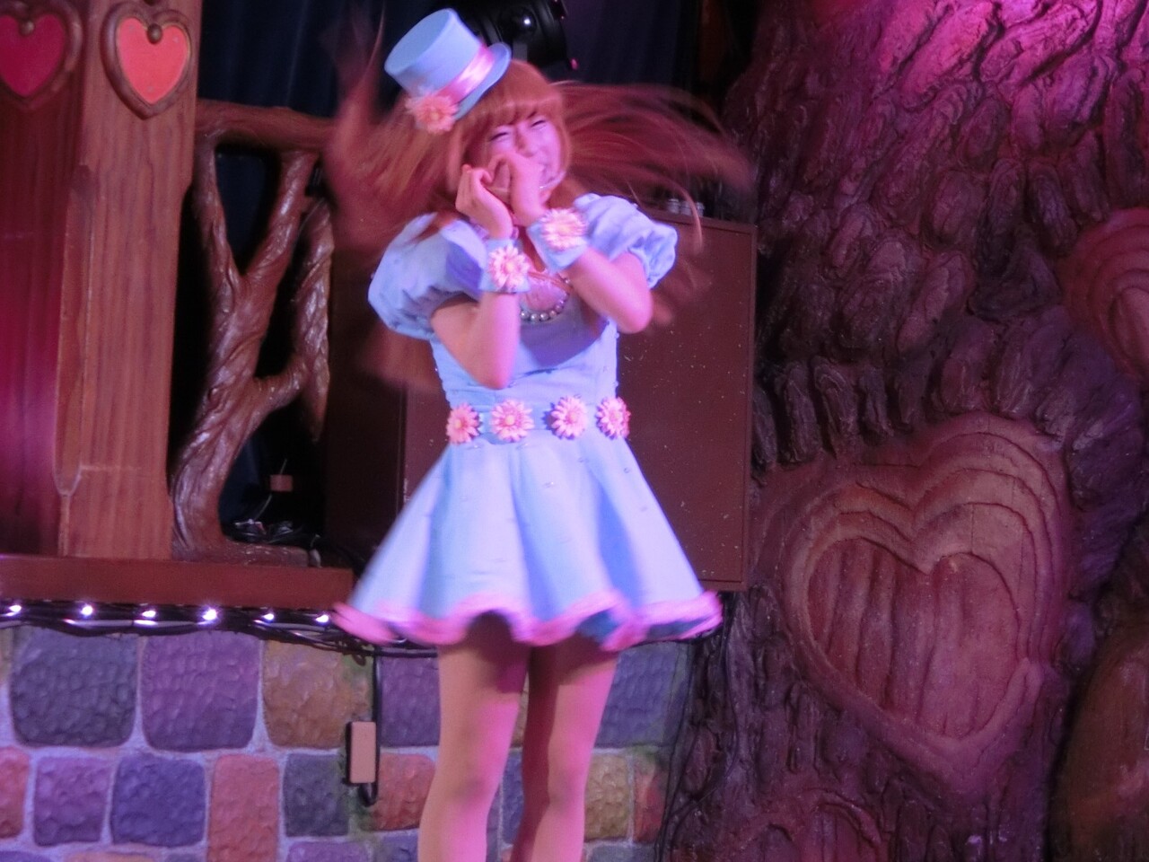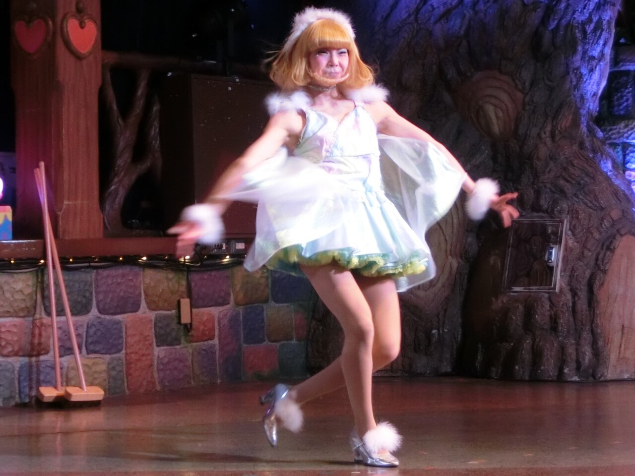 実は前からちょっと気づいていたんですが、この3人、片つま先をピッとあげてポーズを取ることが多いんですよね。特にまゆこちゃんは2曲目のキティの曲でも軽やかにつま先上げのダンスをするので、それが可愛くて毎回楽しみに観ちゃいます。