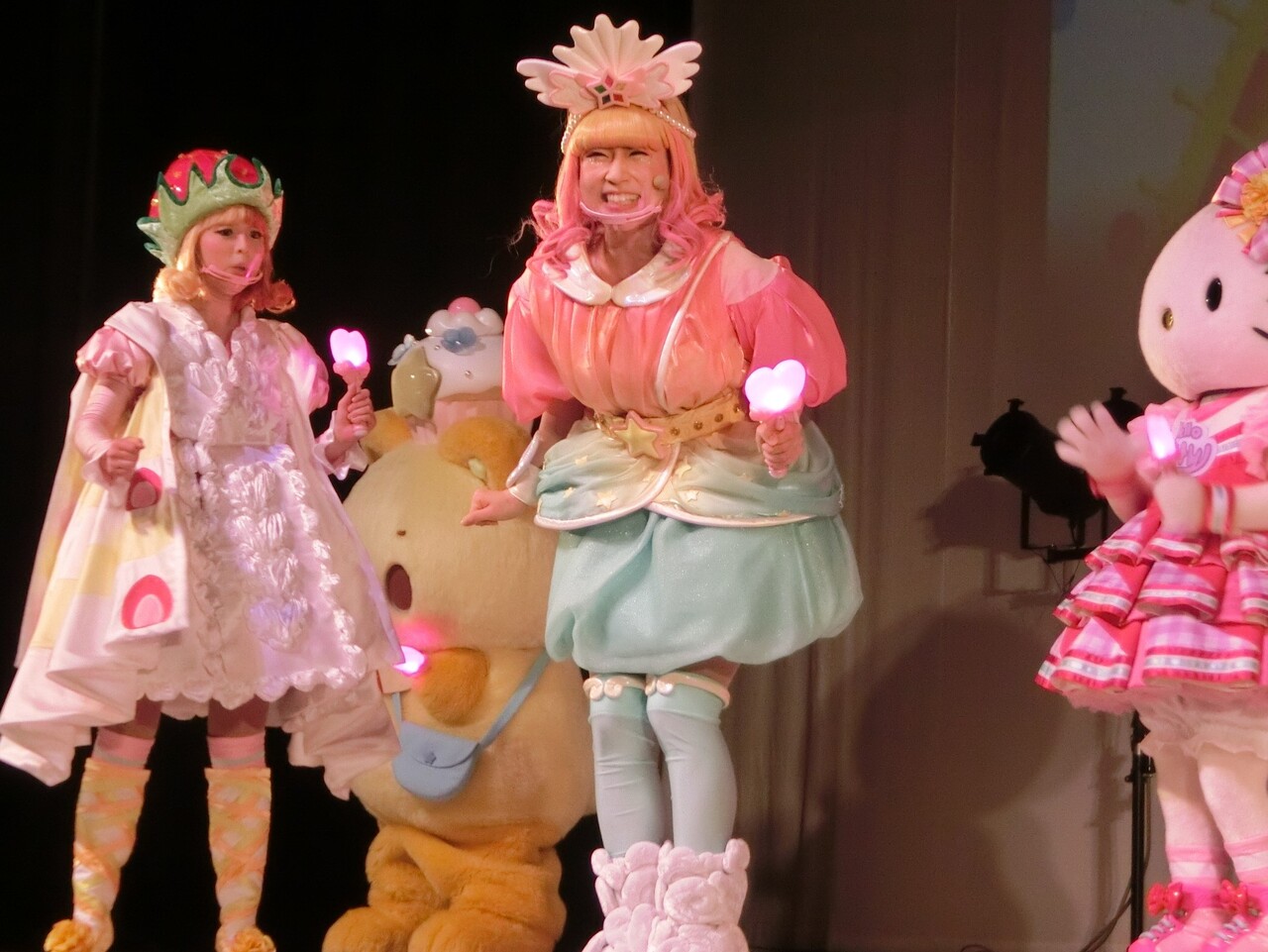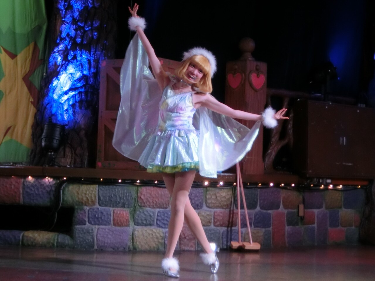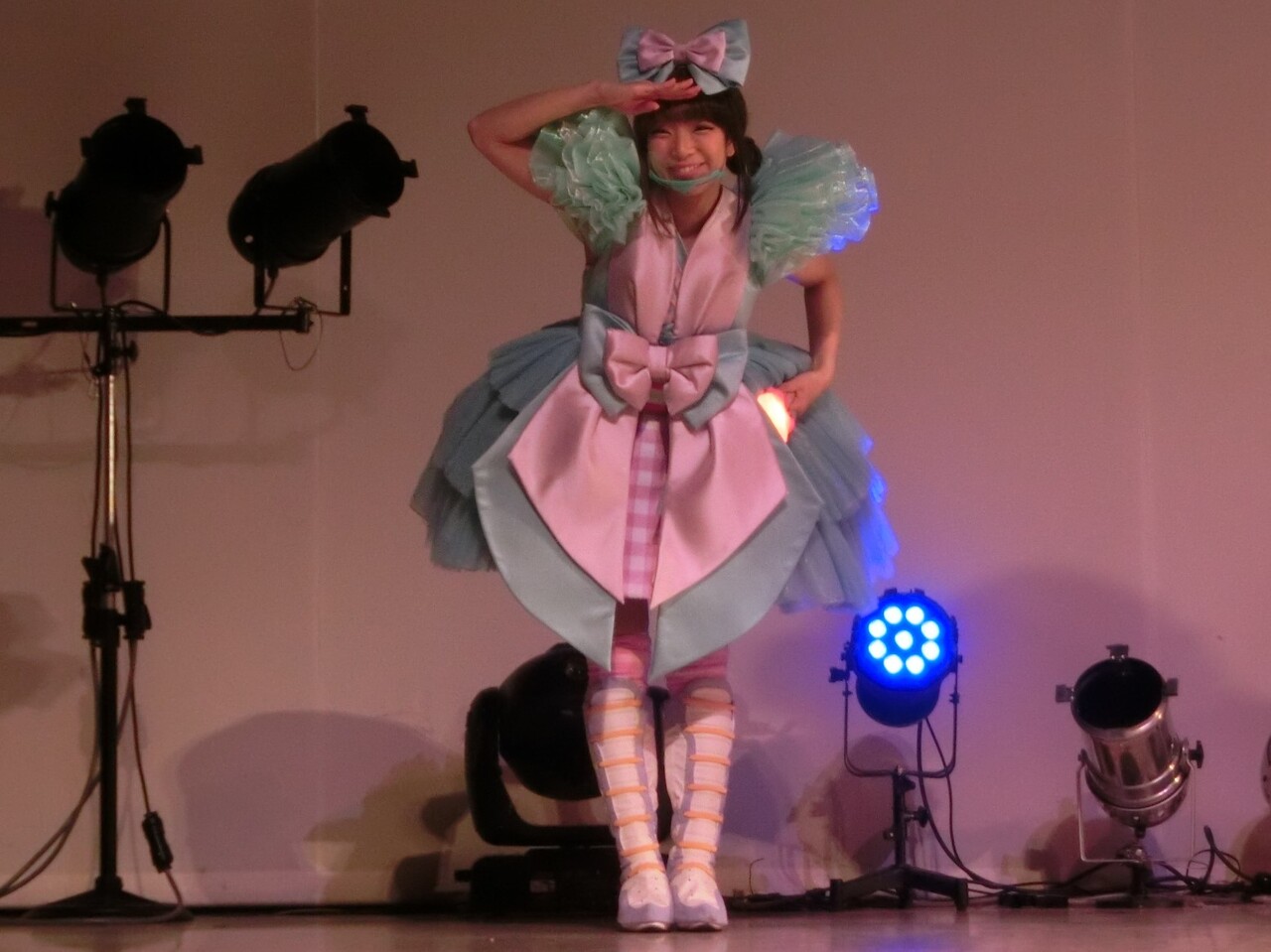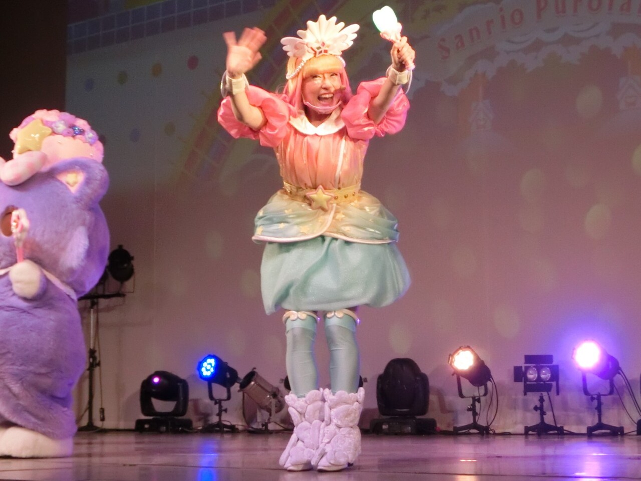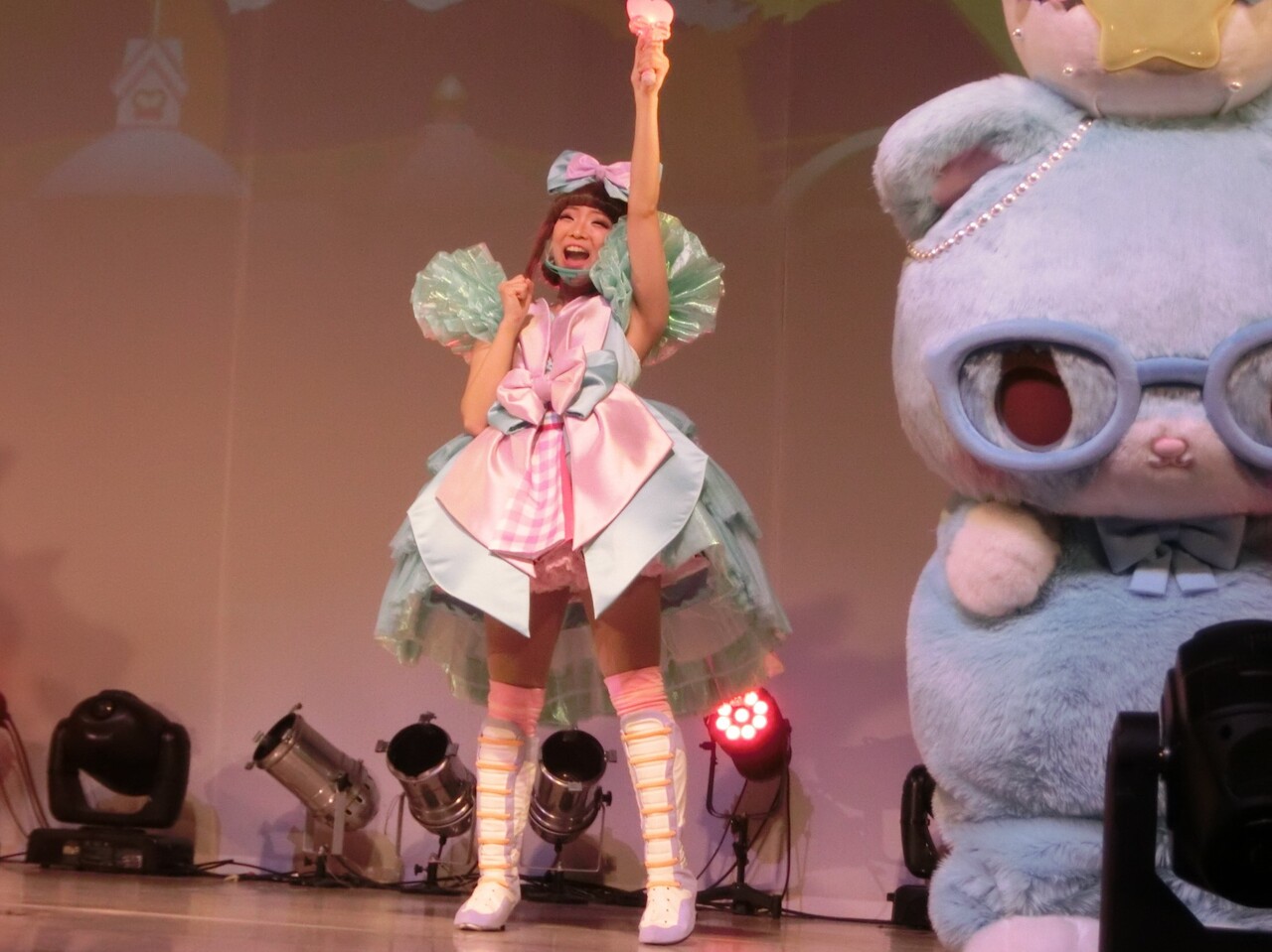 実は前からちょっと気づいていたんですが、この3人、片つま先をピッとあげてポーズを取ることが多いんですよね。特にまゆこちゃんは2曲目のキティの曲でも軽やかにつま先上げのダンスをするので、それが可愛くて毎回楽しみに観ちゃいます。