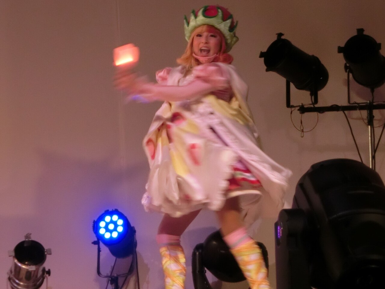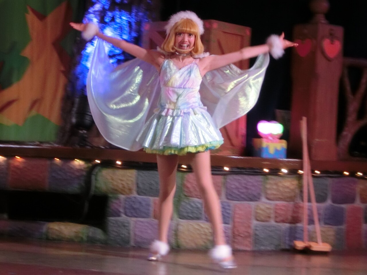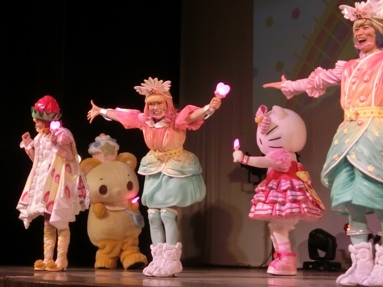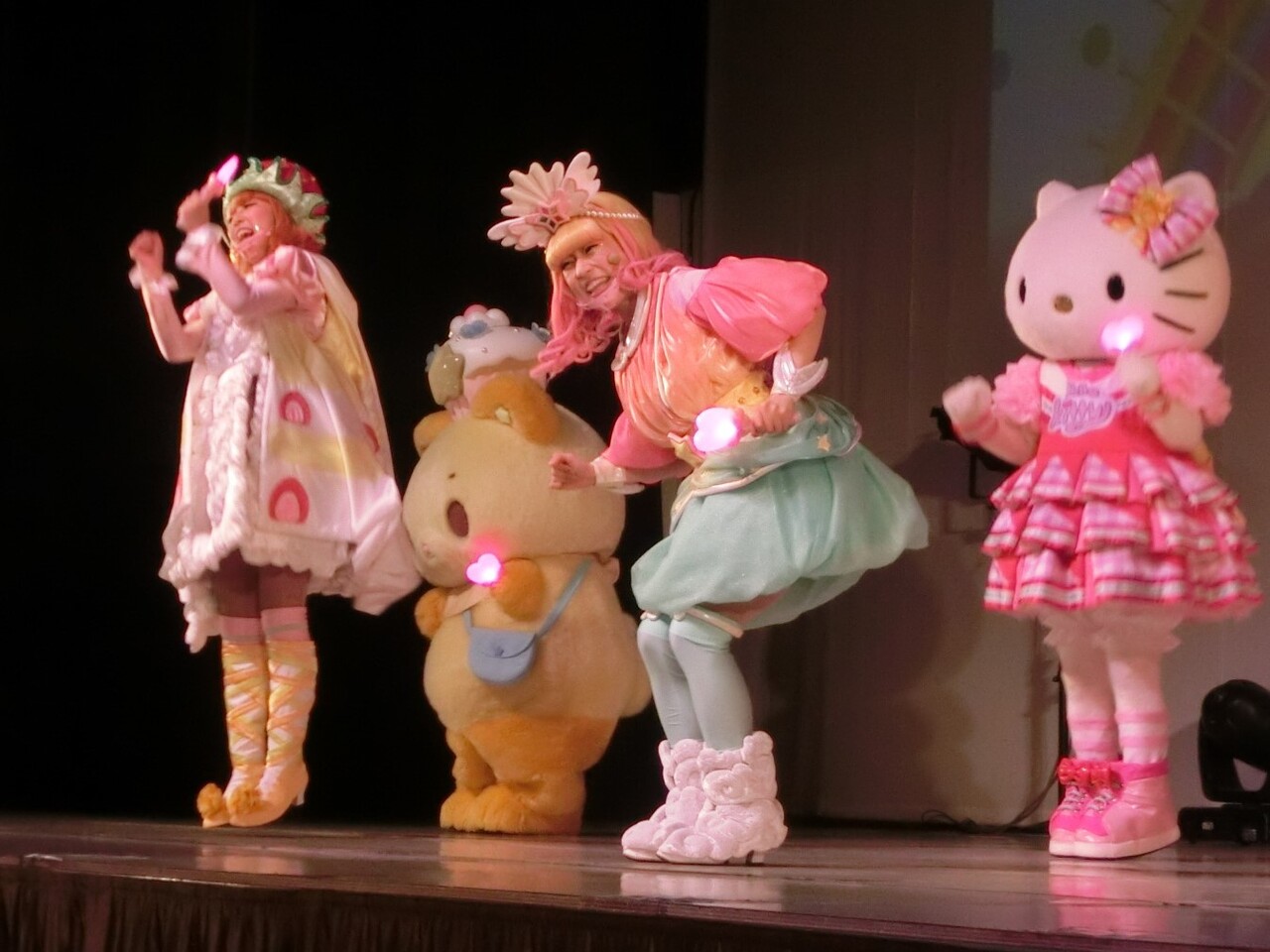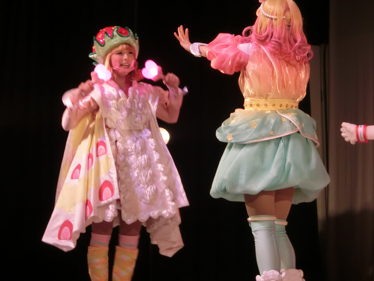 実は前からちょっと気づいていたんですが、この3人、片つま先をピッとあげてポーズを取ることが多いんですよね。特にまゆこちゃんは2曲目のキティの曲でも軽やかにつま先上げのダンスをするので、それが可愛くて毎回楽しみに観ちゃいます。