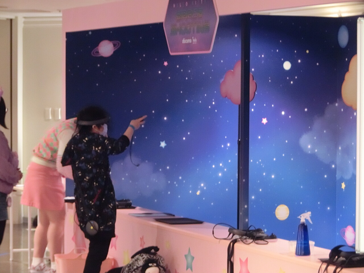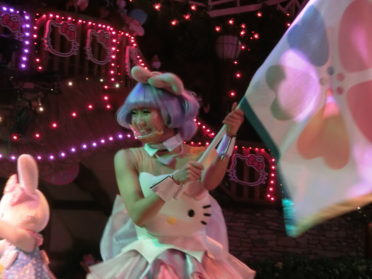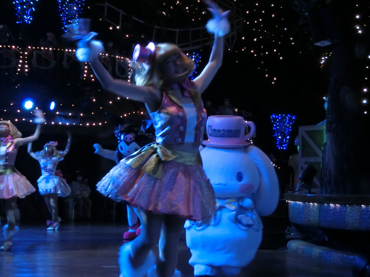 ゲートで、おねえさんがブラックライト(?)を充てて再入場を確認。このスタンプ、毎回キャラが変わるのですが、ん?今日のスタンプ、誰だった??ウサギっぽかったのはわかったけど…と思い「あれ?今日は…クロミちゃんですか?」と聞いたら、おねえさん、「ふふっ。違いますよ。もう一度光あてましょうか?誰だかわかりますか?」