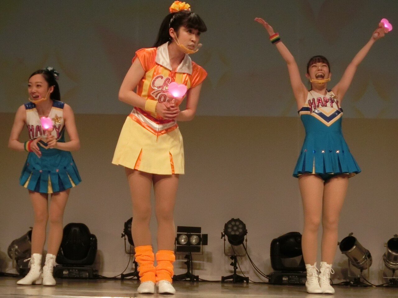 本日のエンタメ最終ステージは、この3人!MCリサちゃん(清水リサちゃん)、チア1と2はみらいちゃん(金本みらいちゃん)とまゆこちゃん(橋詰麻友子ちゃん)です!!