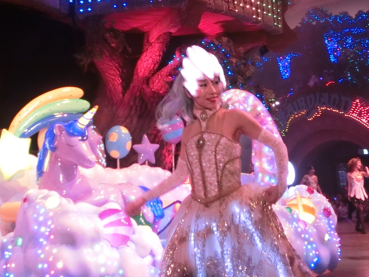 ここへ着いたのは10時30分過ぎ。今日のパレードは変則、11時と15時なので、ちょうど1パレが始まろうかというところです。最初にも書いた通り、「お昼を食べに」軽くやってきたつもりなので、2階からながめることにしました。