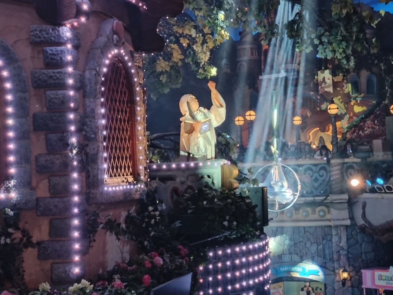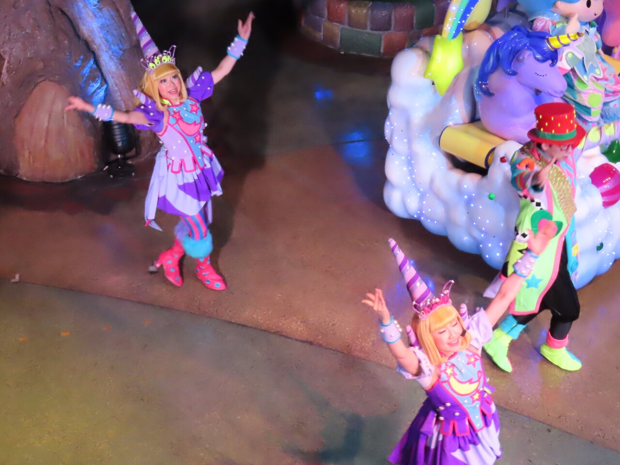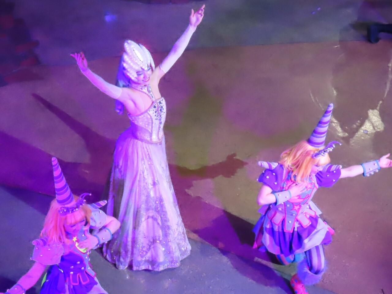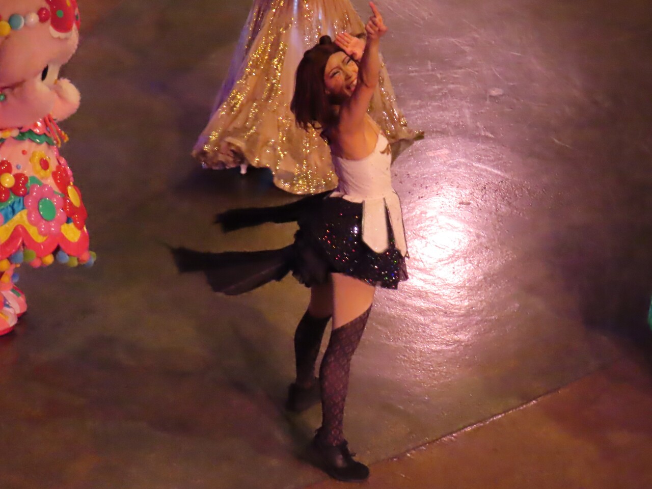 ももち、なにしてるのかな?と思ったら、これ、ミラーボールが出てくるところの蓋を開けてるんですね。ミラギフでいうところの、フロート上のステージを出したりしまったりする係かな?