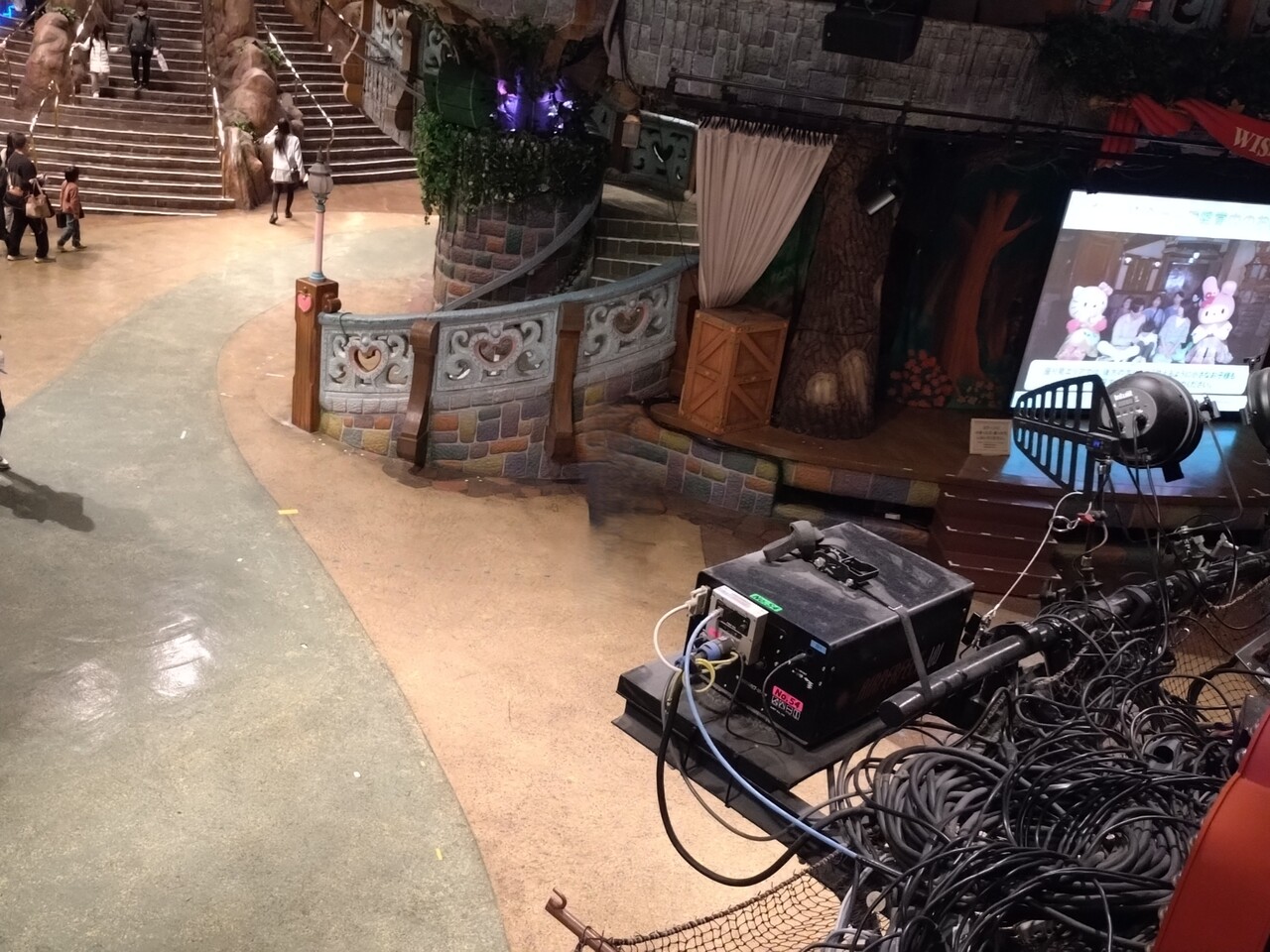 びょんわぁ上演中だから、まだどこか空いているだろう…と思って探したところ、エンタメホール横の階段立見席の上が空いていました。ここは背が高くないとまったくビレッジが見えないところですが、幸い今日は「デカイやつ」2名。全く問題ないです。