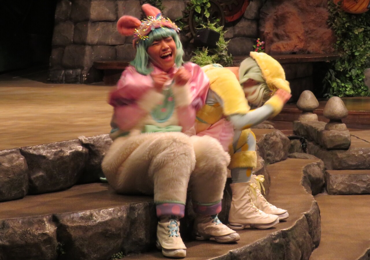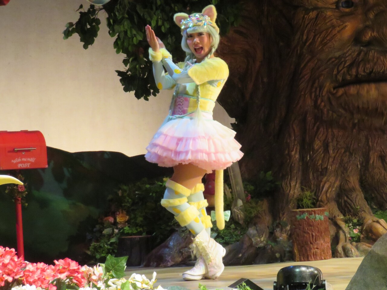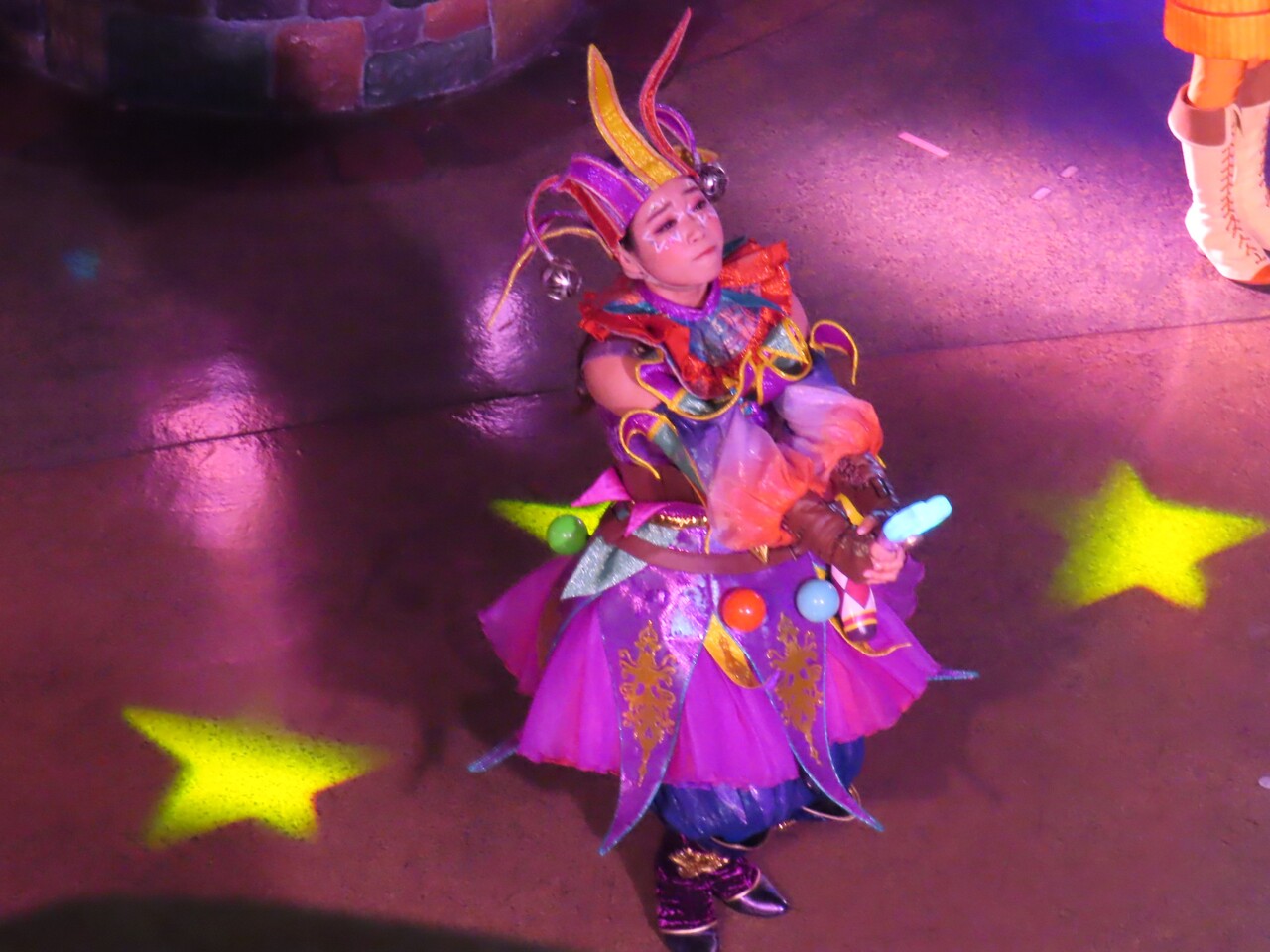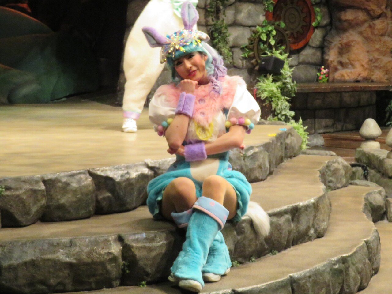 ショーが始まりました。最初に知恵の木の上に登場した司書さんは、シュンシュン君(青木駿さん)。カッコイイ。