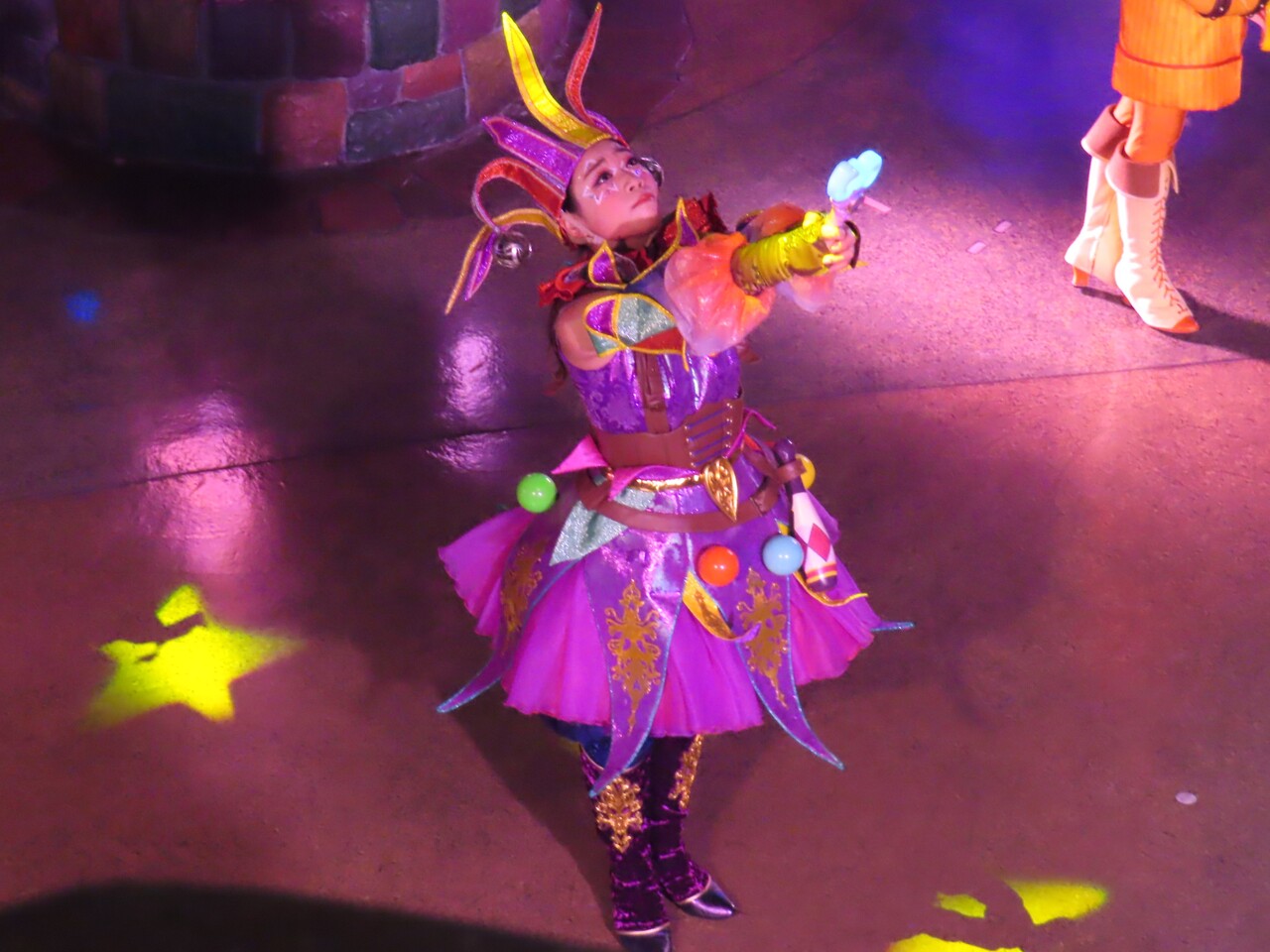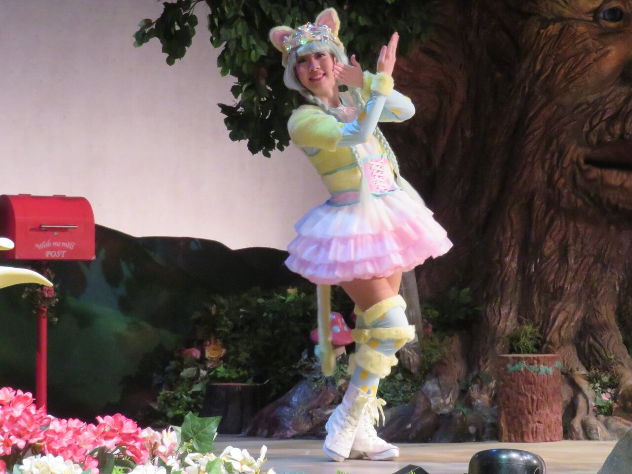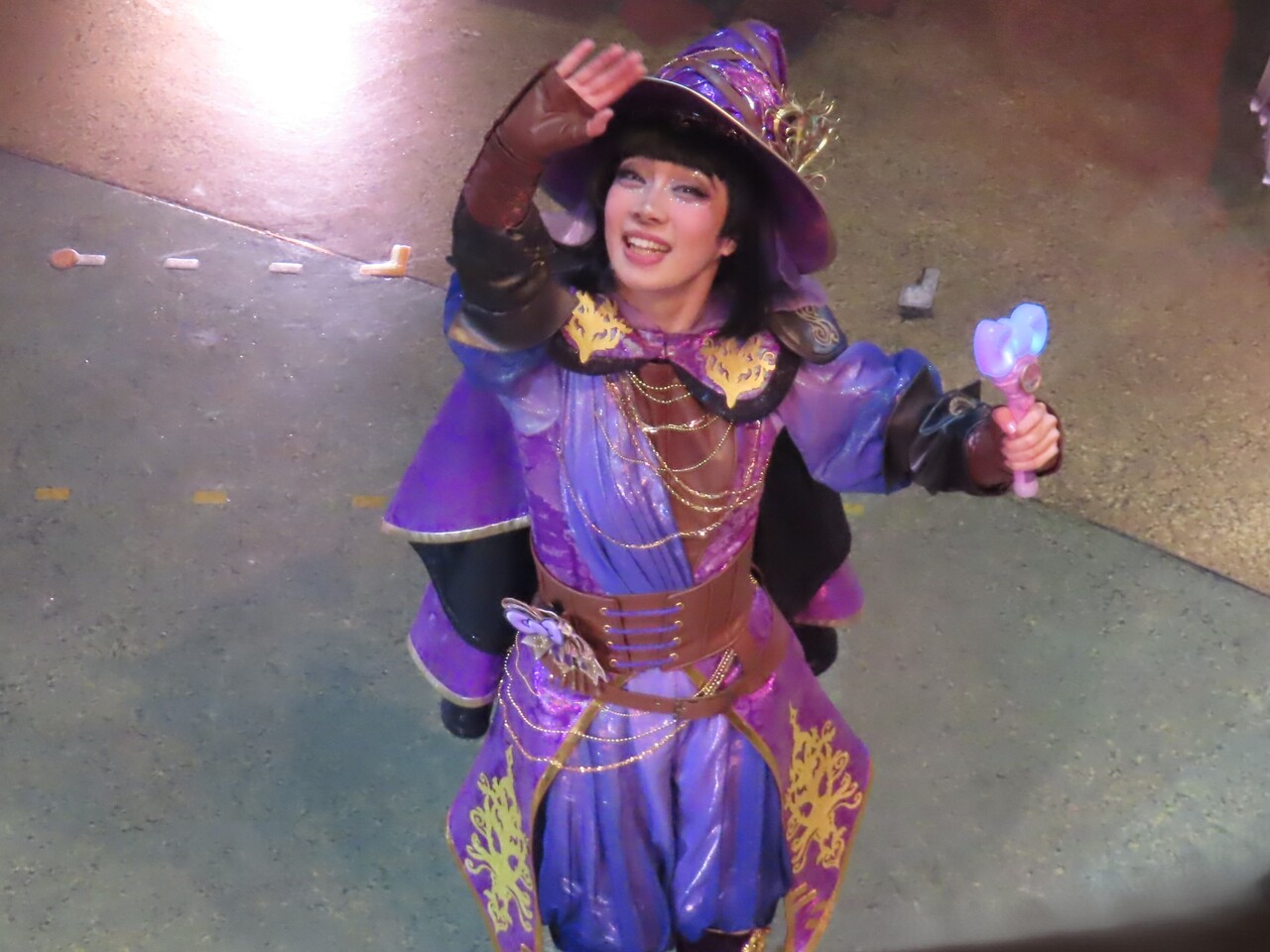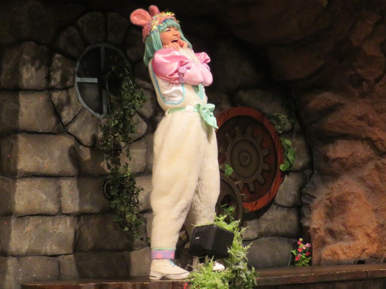 ショーが始まりました。最初に知恵の木の上に登場した司書さんは、シュンシュン君(青木駿さん)。カッコイイ。