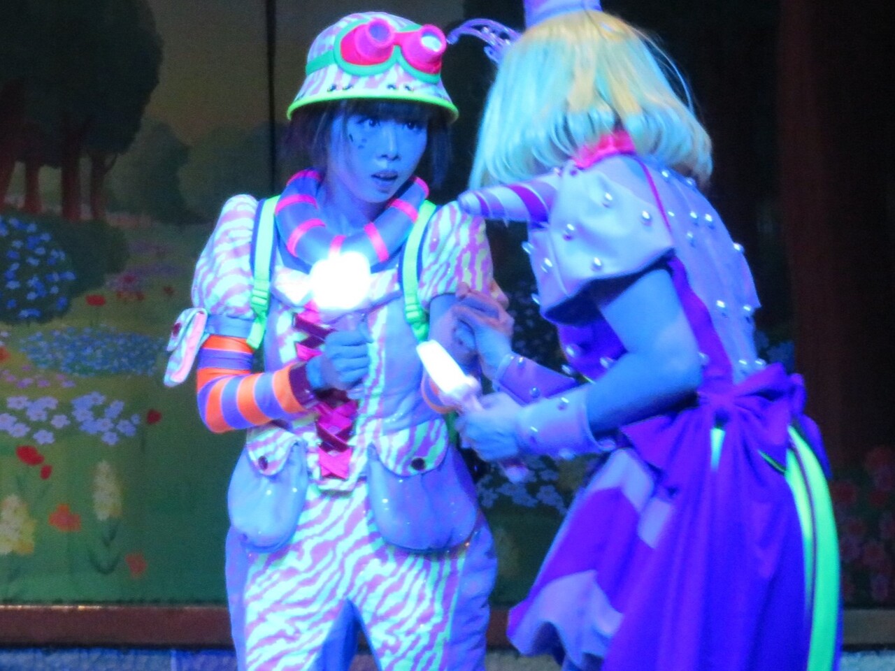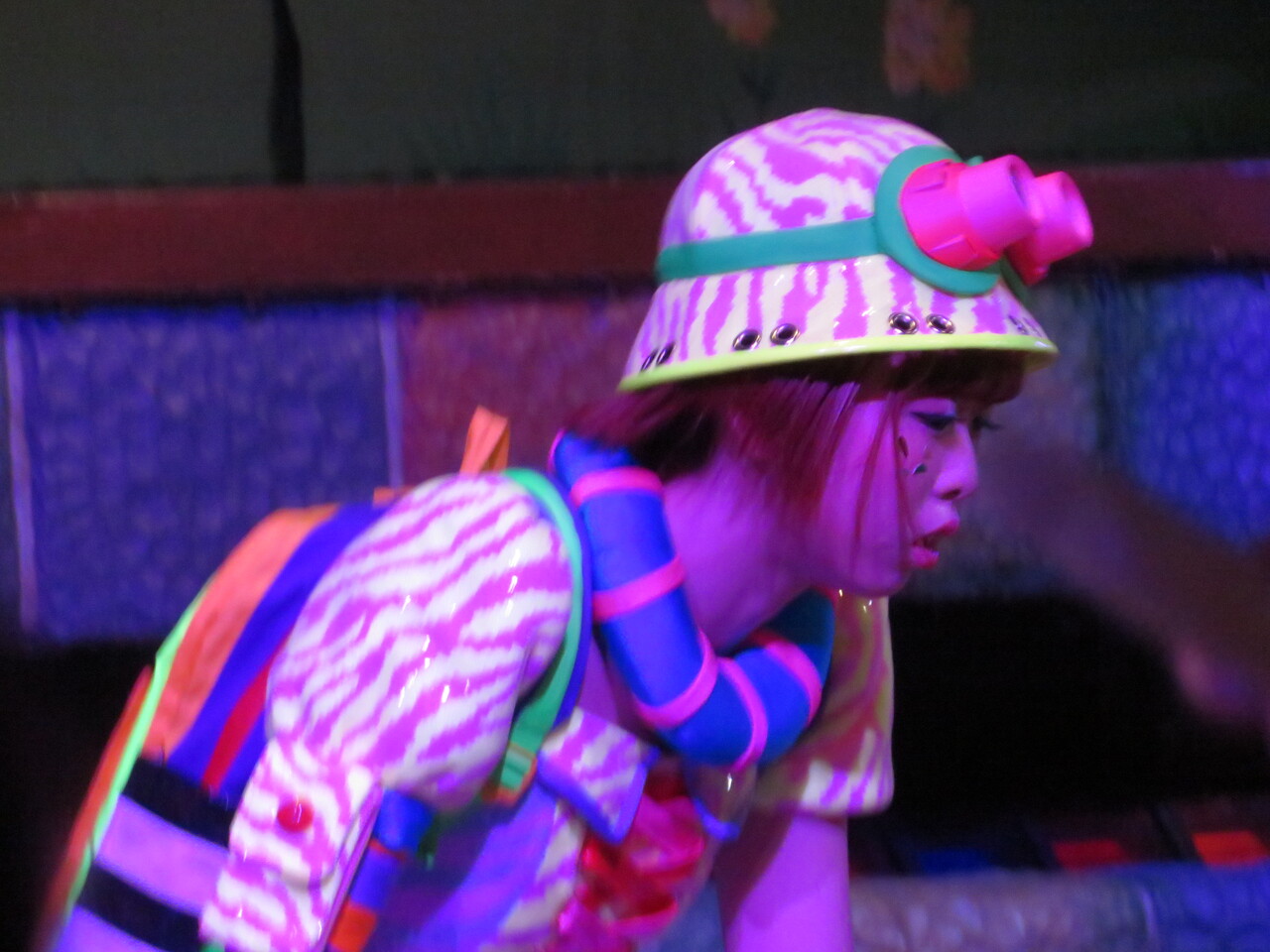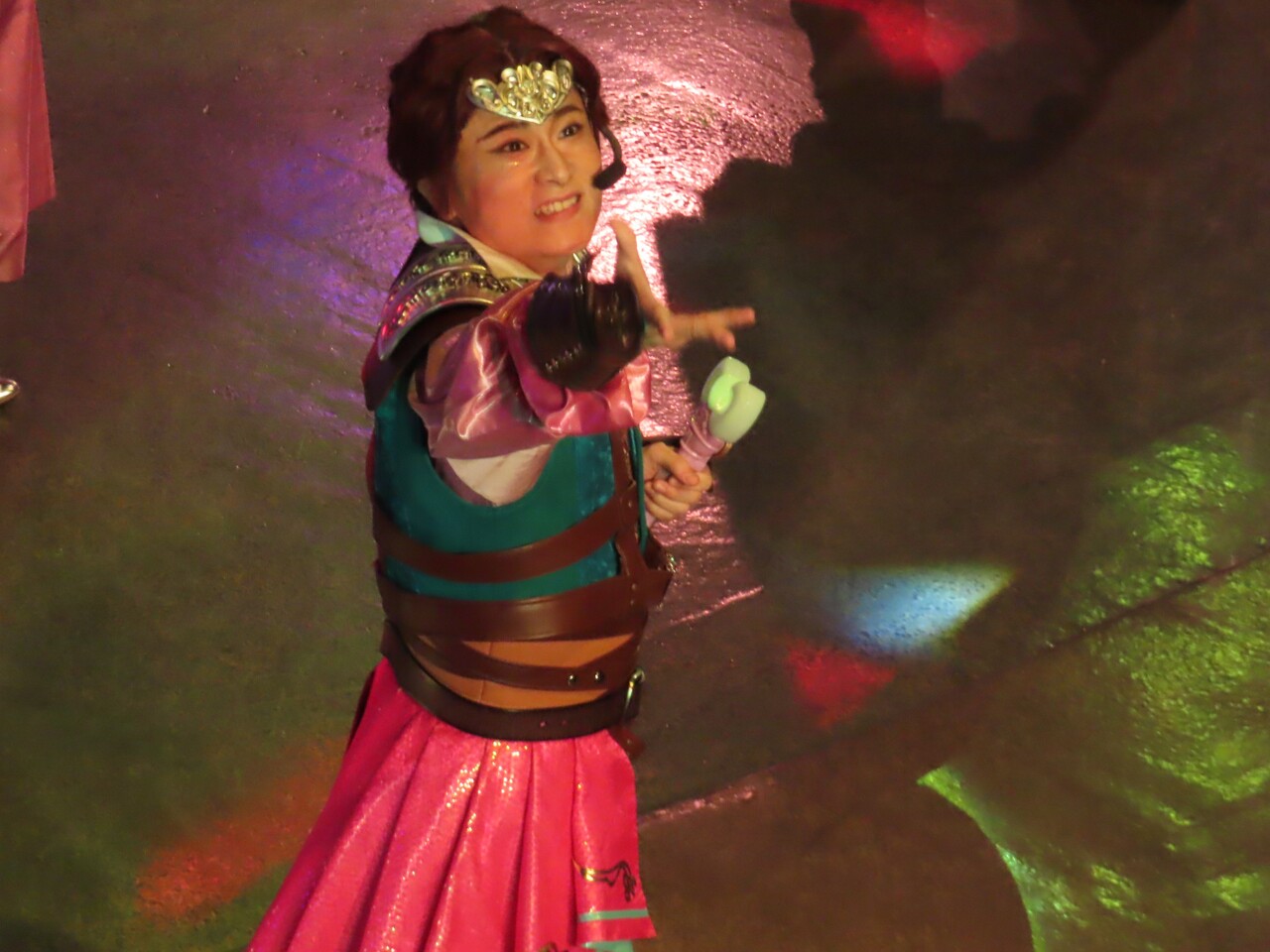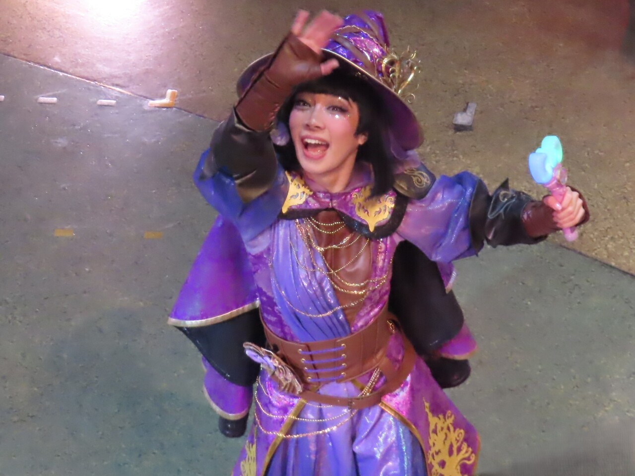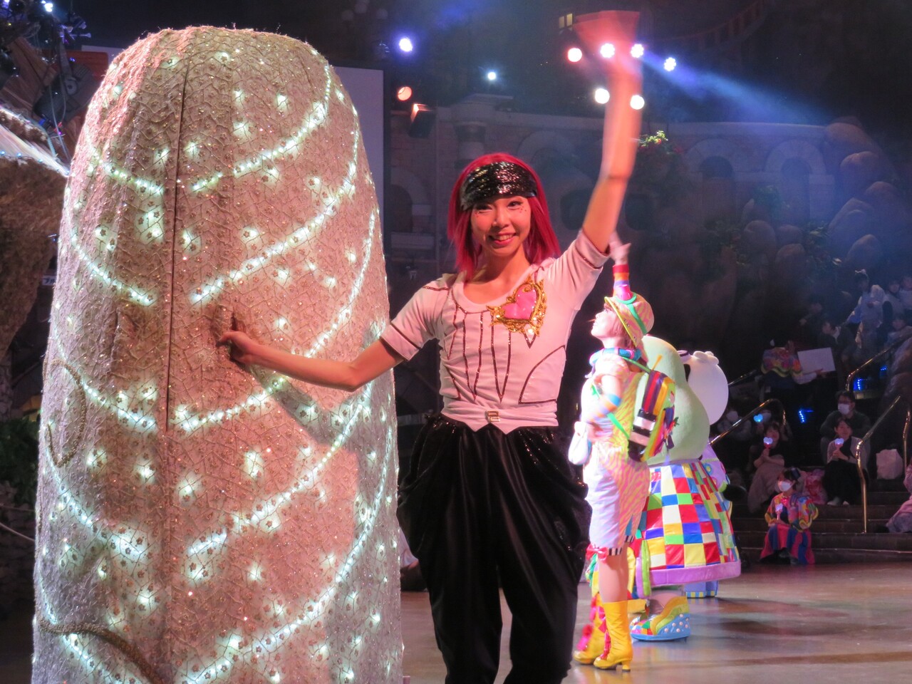 ショーが始まりました。最初に知恵の木の上に登場した司書さんは、シュンシュン君(青木駿さん)。カッコイイ。