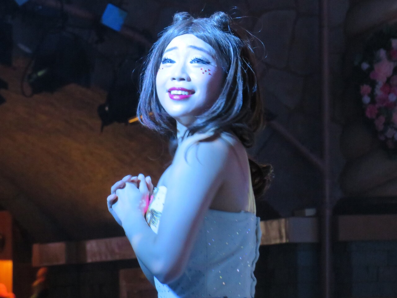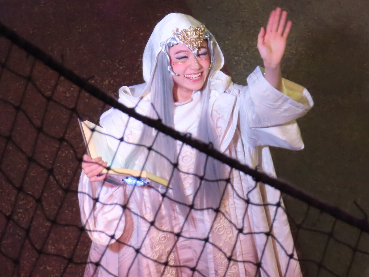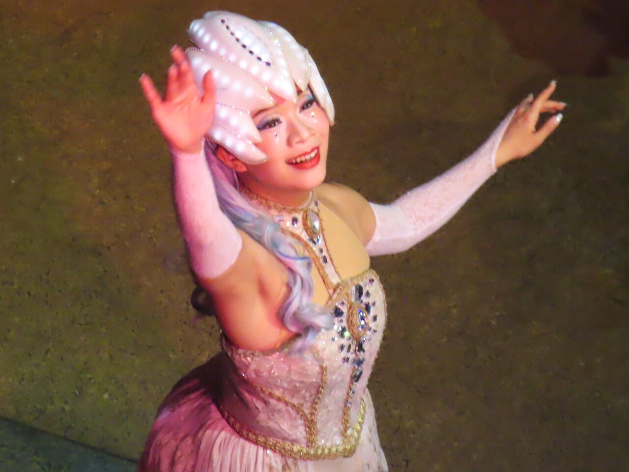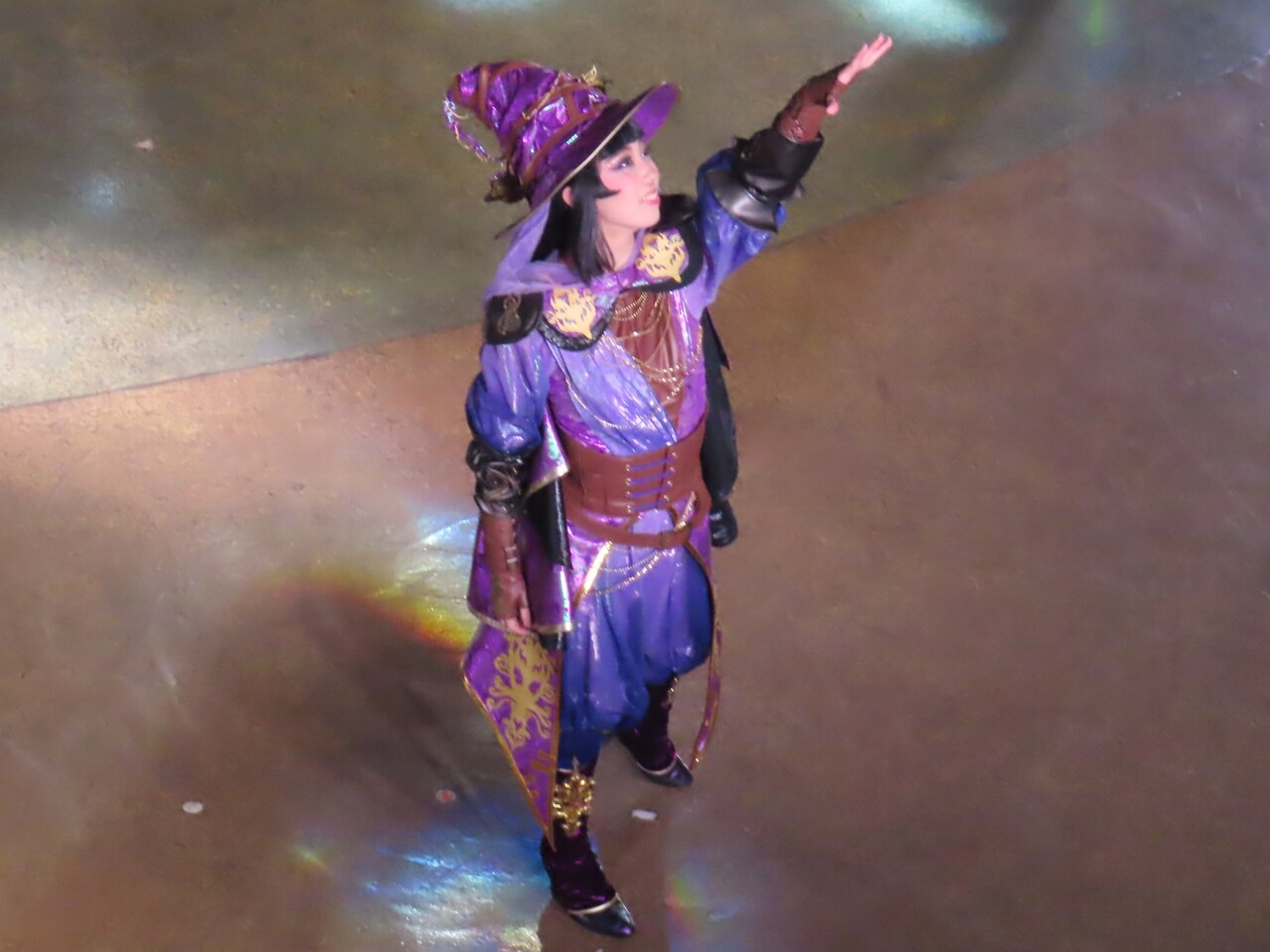 ショーが始まりました。最初に知恵の木の上に登場した司書さんは、シュンシュン君(青木駿さん)。カッコイイ。