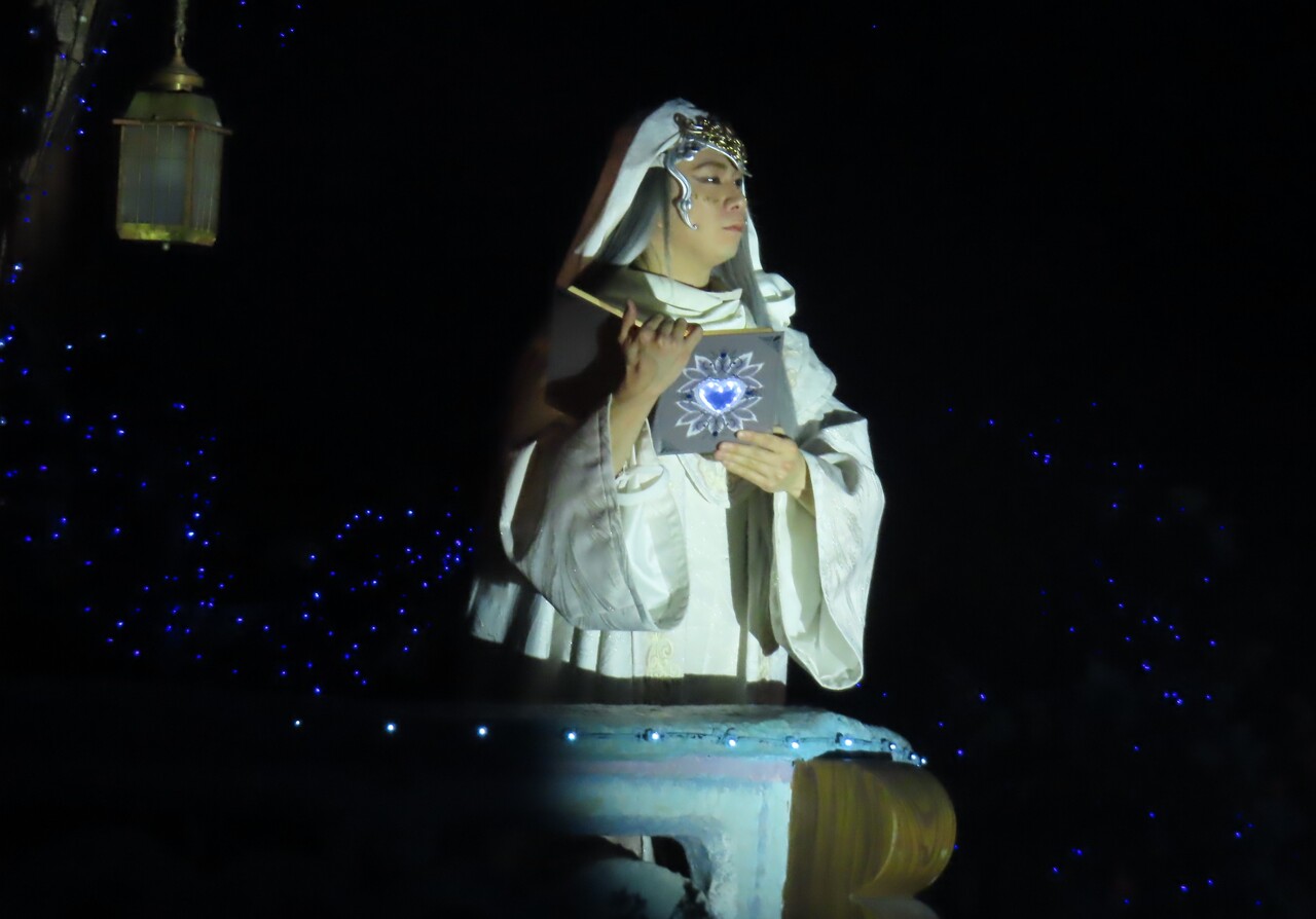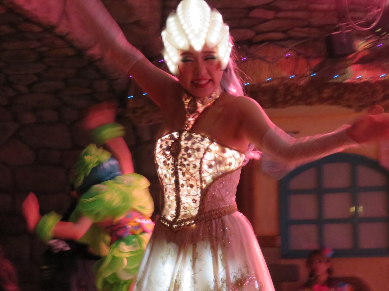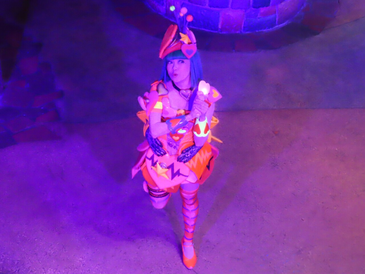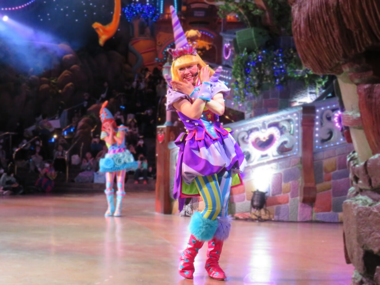 ショーが始まりました。最初に知恵の木の上に登場した司書さんは、シュンシュン君(青木駿さん)。カッコイイ。