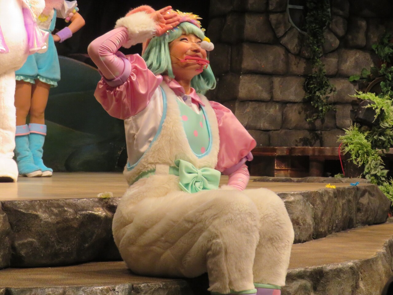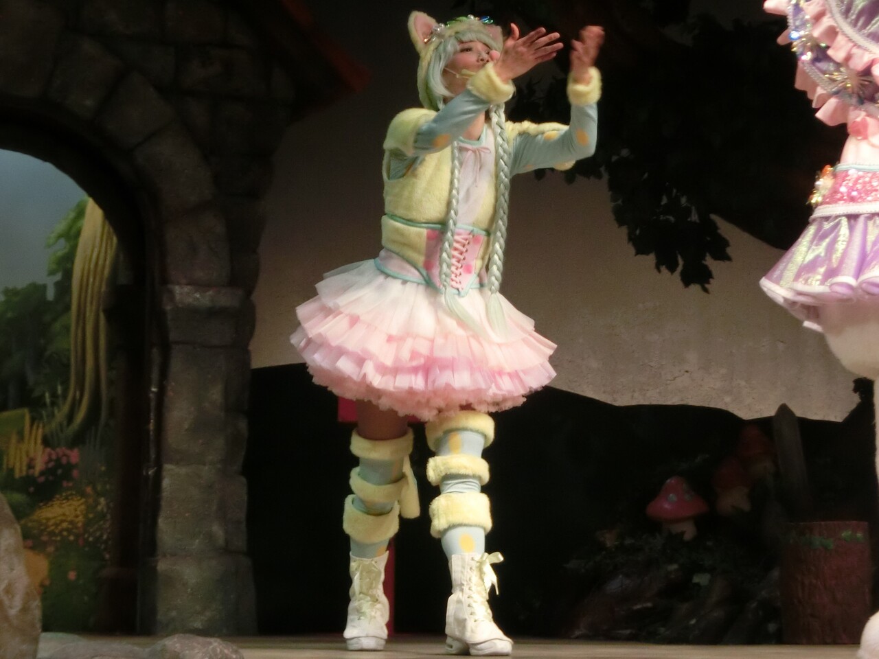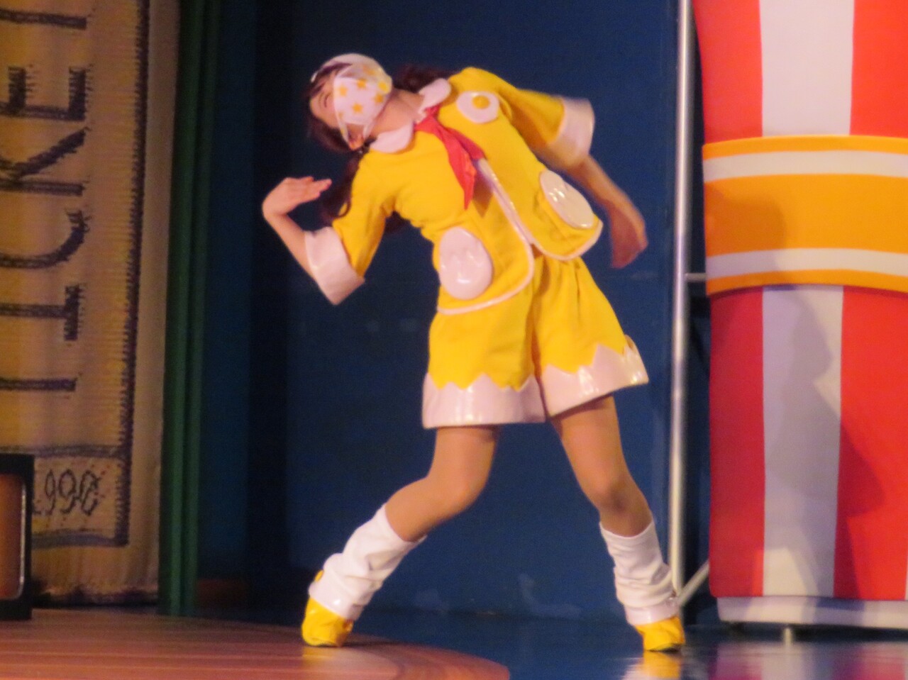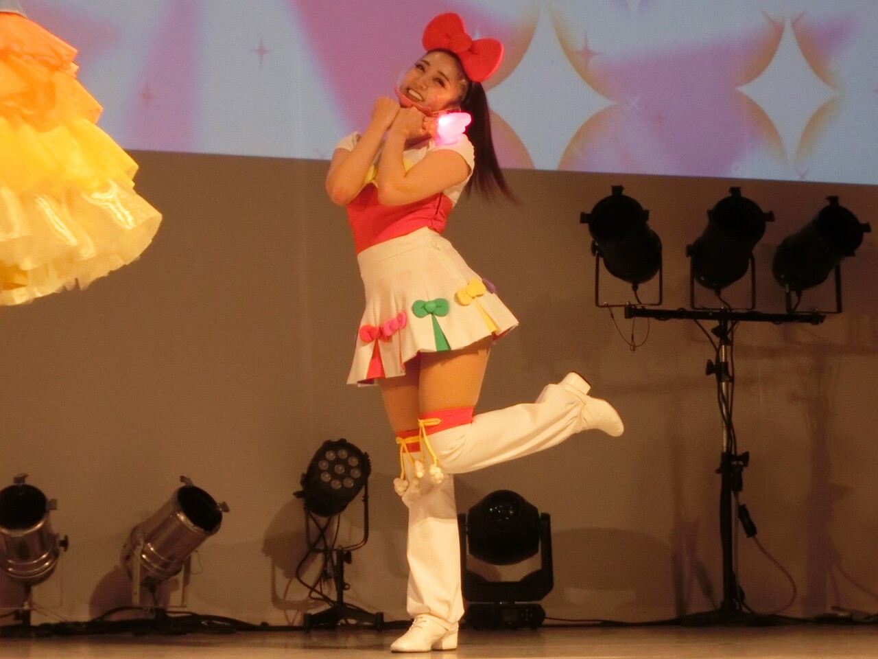 そしてシェネちゃんは、リサちゃん(清水リサちゃん)です。先月までは、シェネちゃんはあいちゃん(小林愛ちゃん)が演じていました。愛ちゃんは5月いっぱいでピューロD☆Eのメンバー一覧からもいなくなっており、2チーム掛け持ちでリサちゃんが代役となったのでしょう。