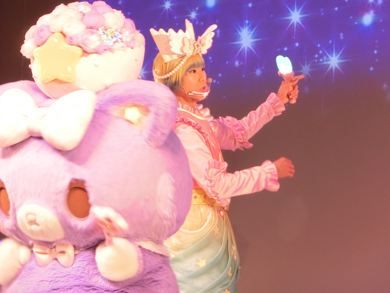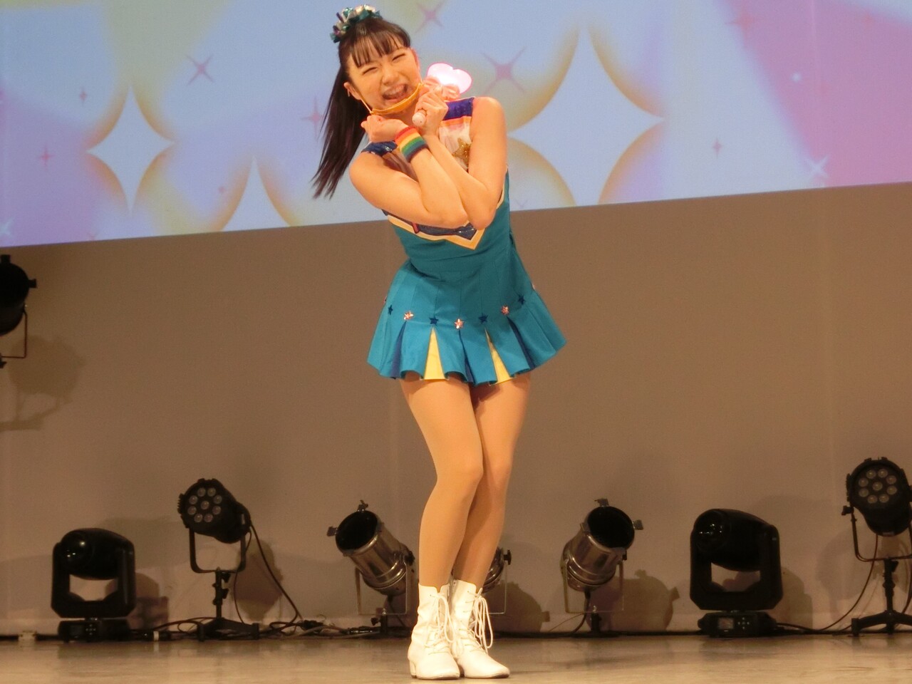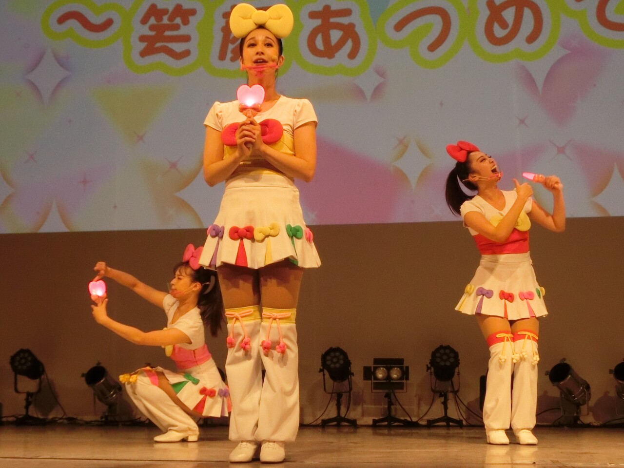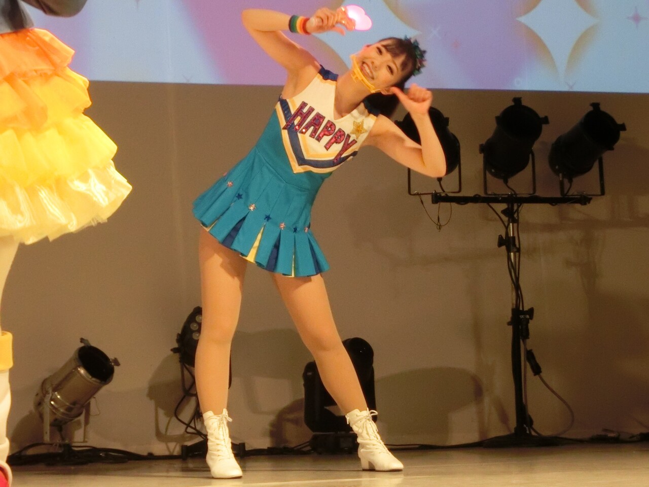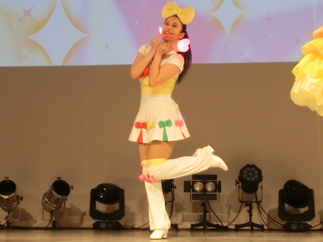 そしてシェネちゃんは、リサちゃん(清水リサちゃん)です。先月までは、シェネちゃんはあいちゃん(小林愛ちゃん)が演じていました。愛ちゃんは5月いっぱいでピューロD☆Eのメンバー一覧からもいなくなっており、2チーム掛け持ちでリサちゃんが代役となったのでしょう。