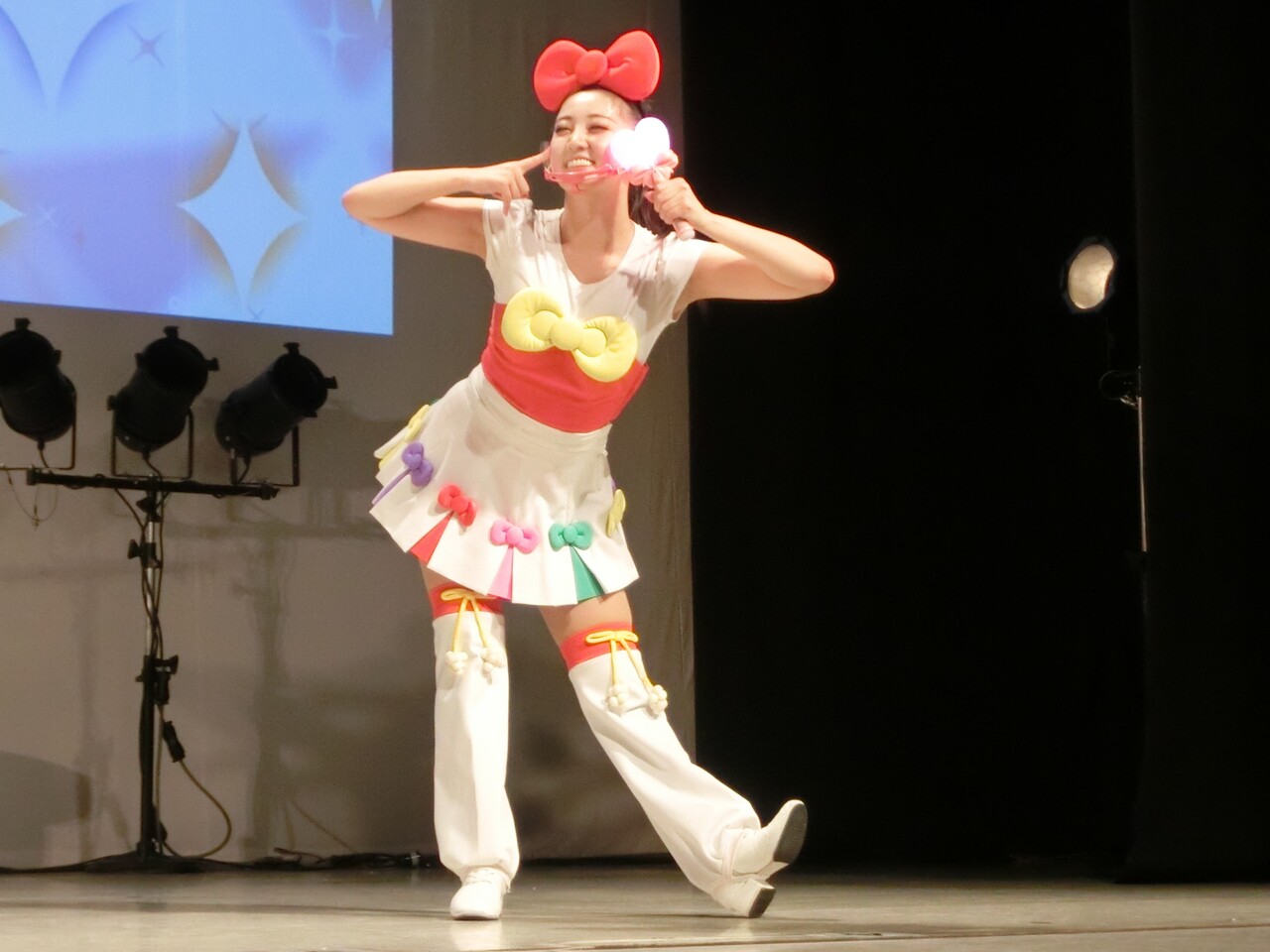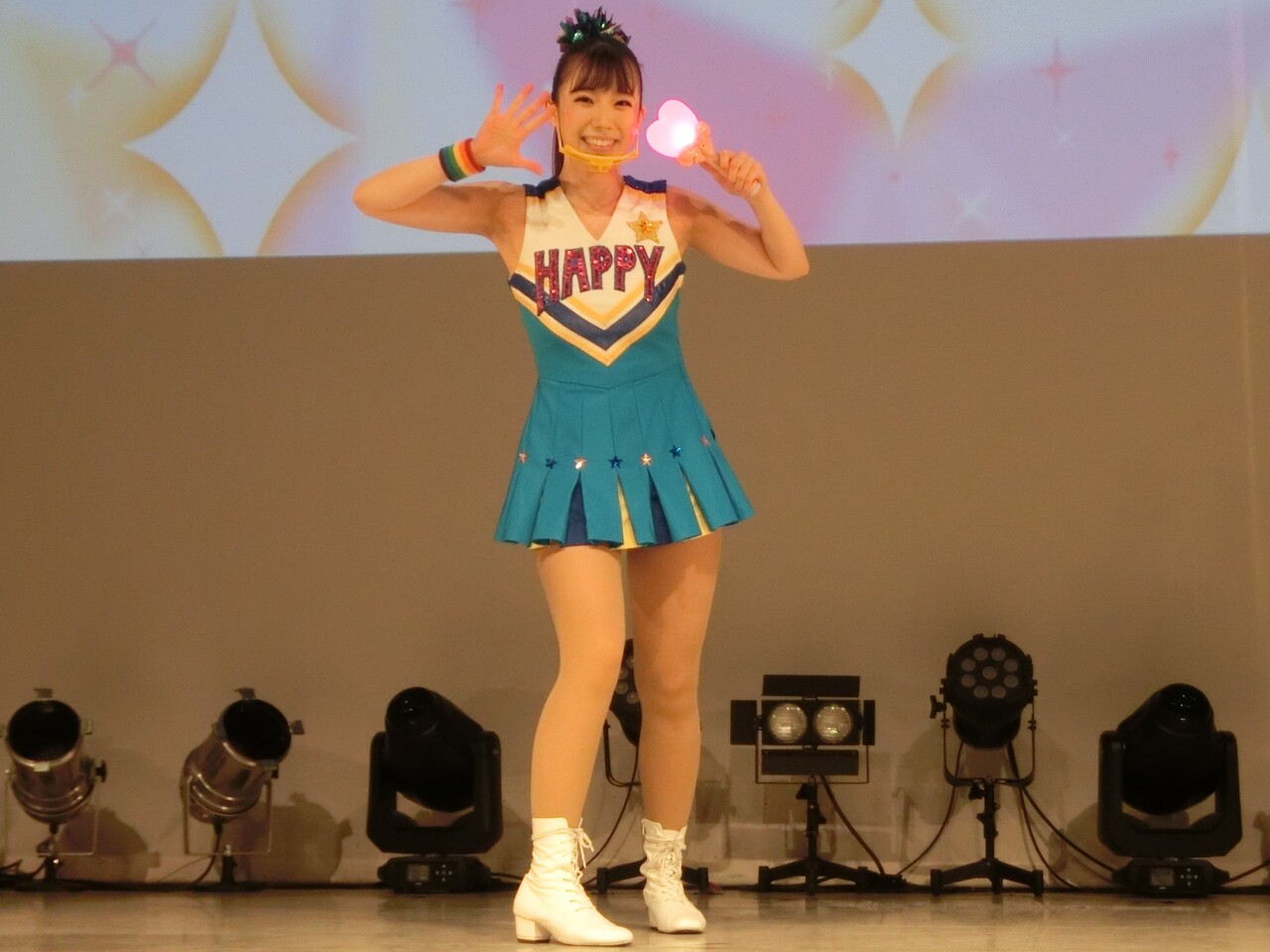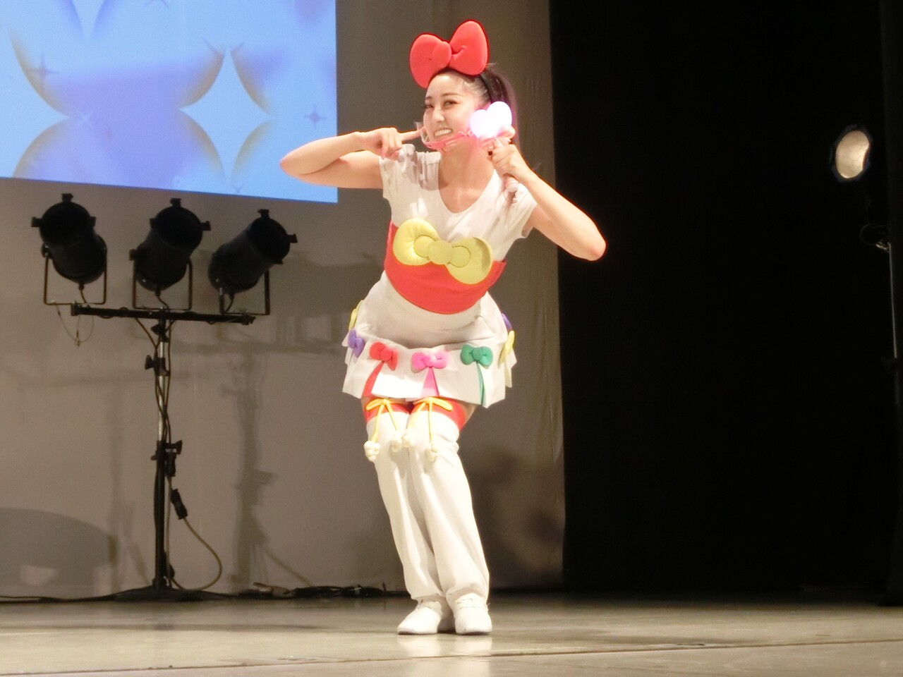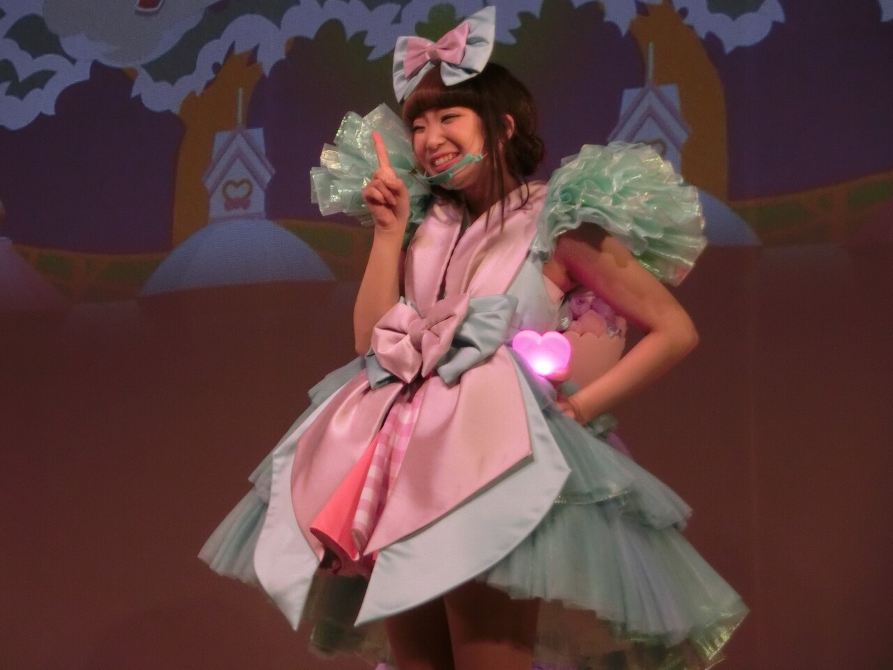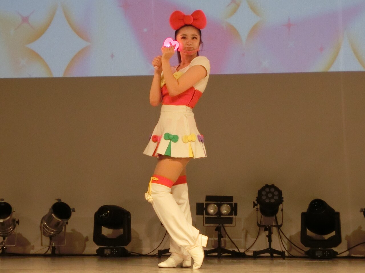 そしてシェネちゃんは、リサちゃん(清水リサちゃん)です。先月までは、シェネちゃんはあいちゃん(小林愛ちゃん)が演じていました。愛ちゃんは5月いっぱいでピューロD☆Eのメンバー一覧からもいなくなっており、2チーム掛け持ちでリサちゃんが代役となったのでしょう。