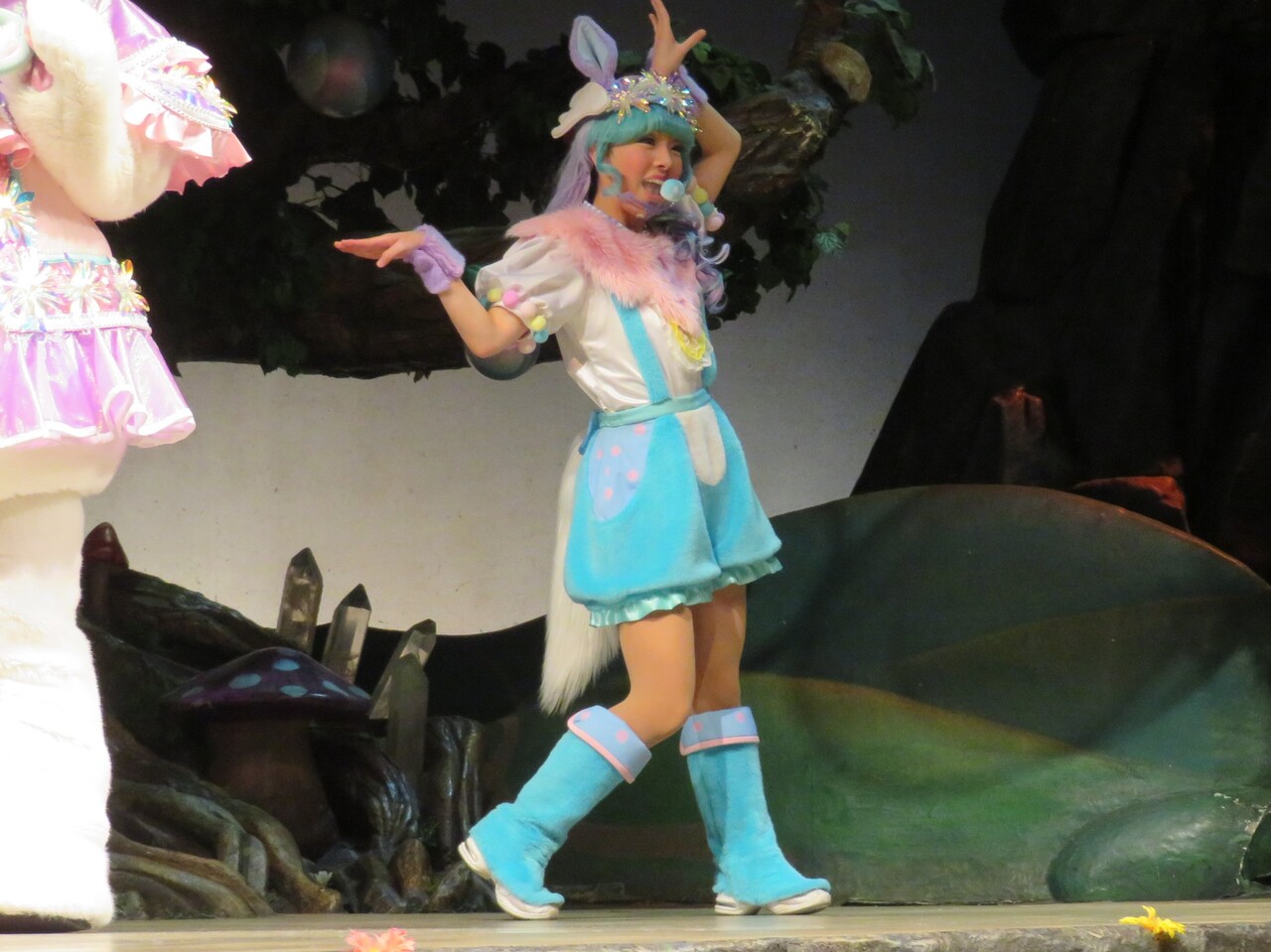 すると、なんと開演時には2階には私のほかには3人のみ。今回はお花の精さんがるんるん(渡辺歩夢ちゃん)、水の精さんがはしこちゃん(橋詰夕夏ちゃん)だったのですが、ラストのびょんわぁダンスではるんるんとのアイコンタクト独り占め、という感じでラッキーでした。